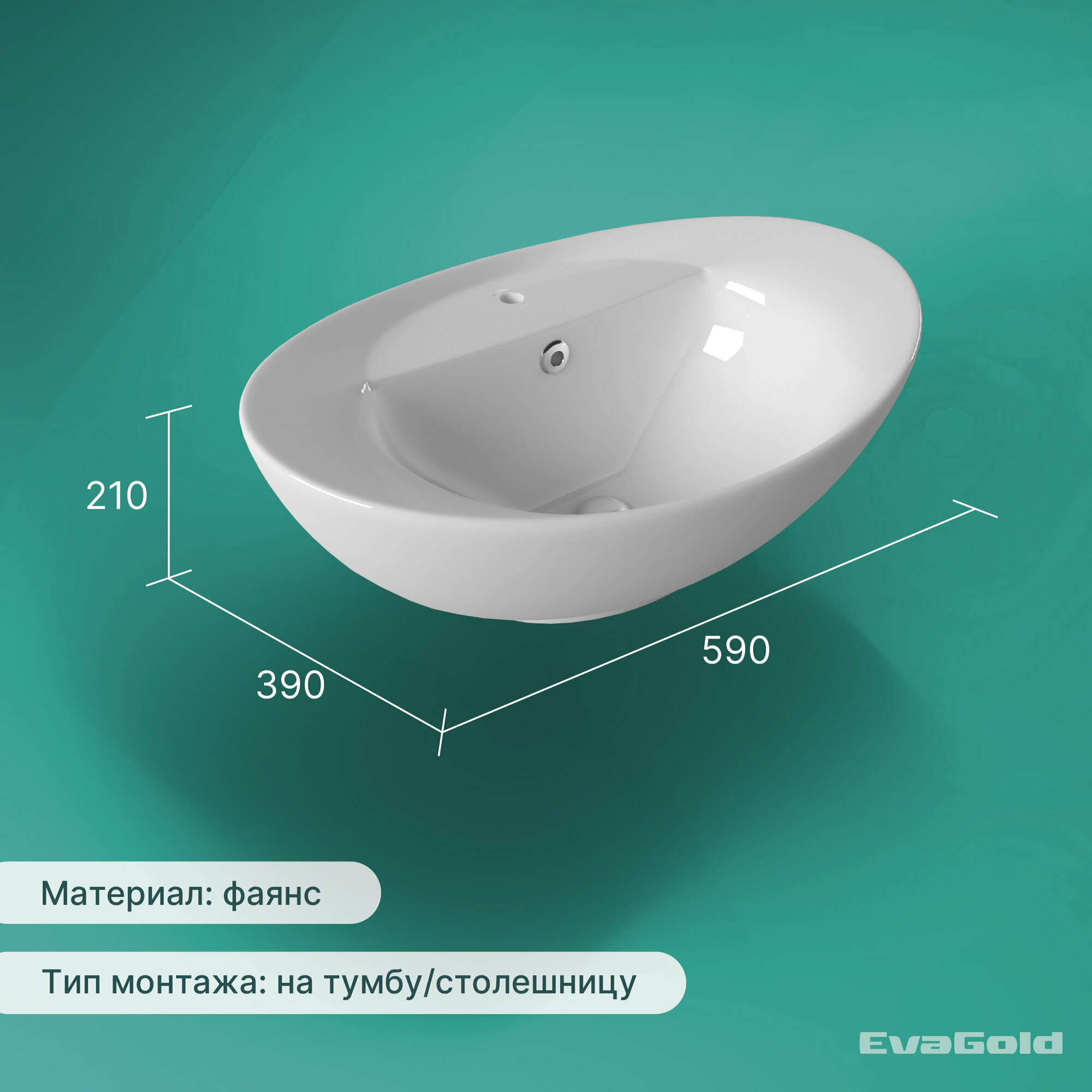 Купить Раковина для ванной накладная EvaGold 590*390*210мм, модель ND601.2 белый