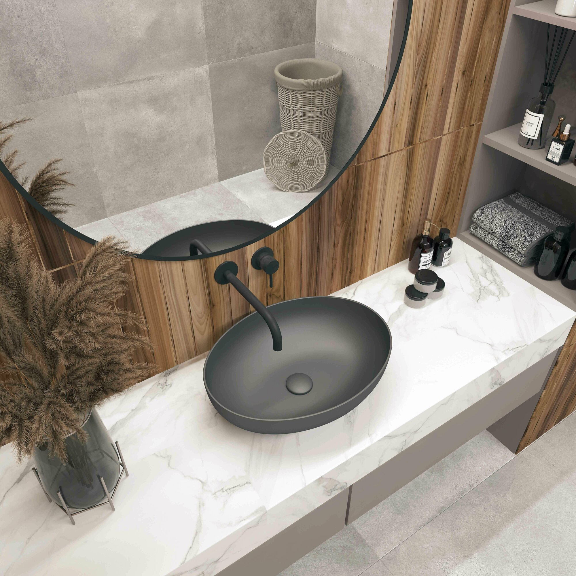 Купить Раковина для ванной накладная EvaGold 515*390*145 мм, модель ND601.21 серый матовый