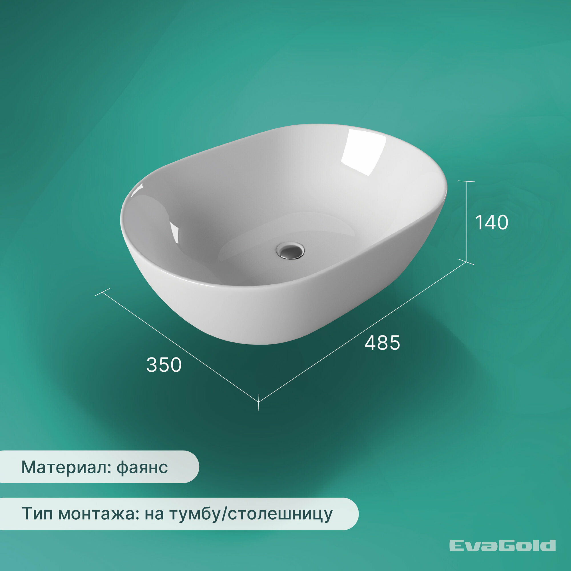 Раковина для ванной накладная EvaGold 585*400*150 мм, модель ND601.9 белый