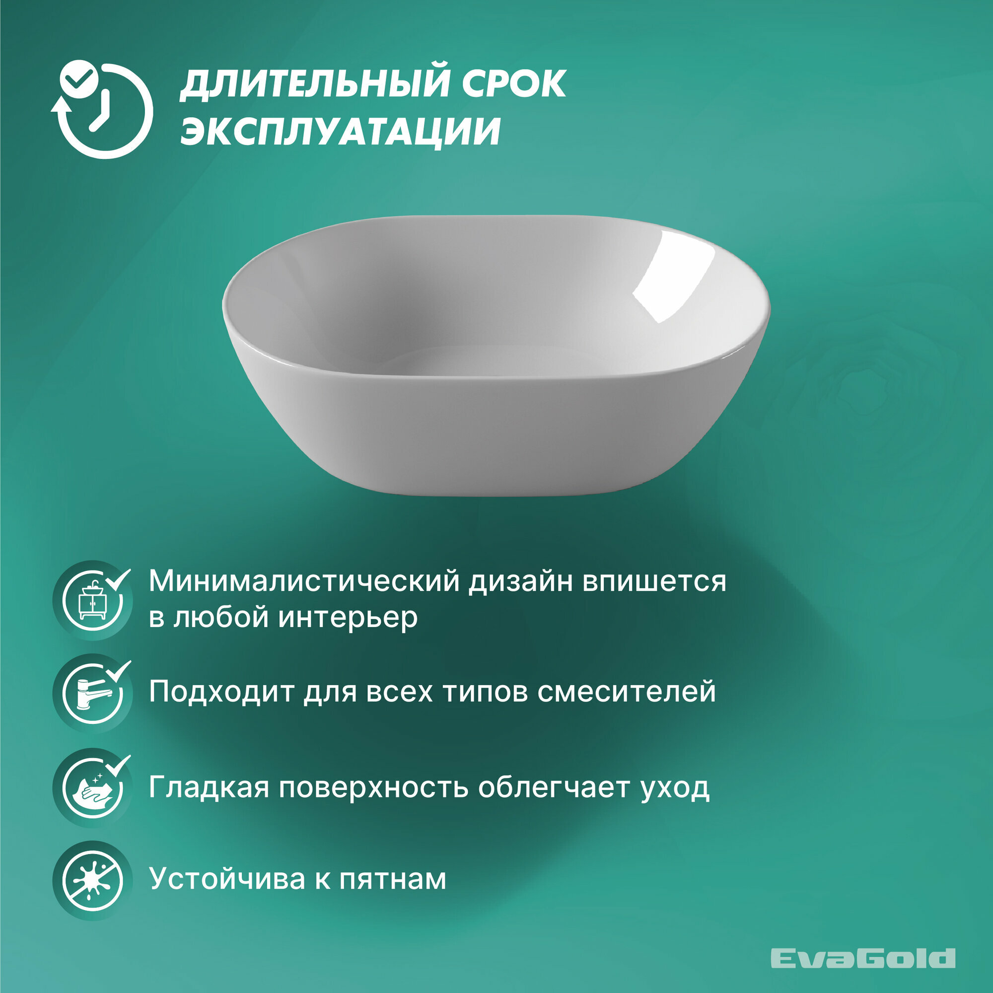 Купить Раковина для ванной накладная EvaGold 485*350*140 мм, модель ND601.11 белый
