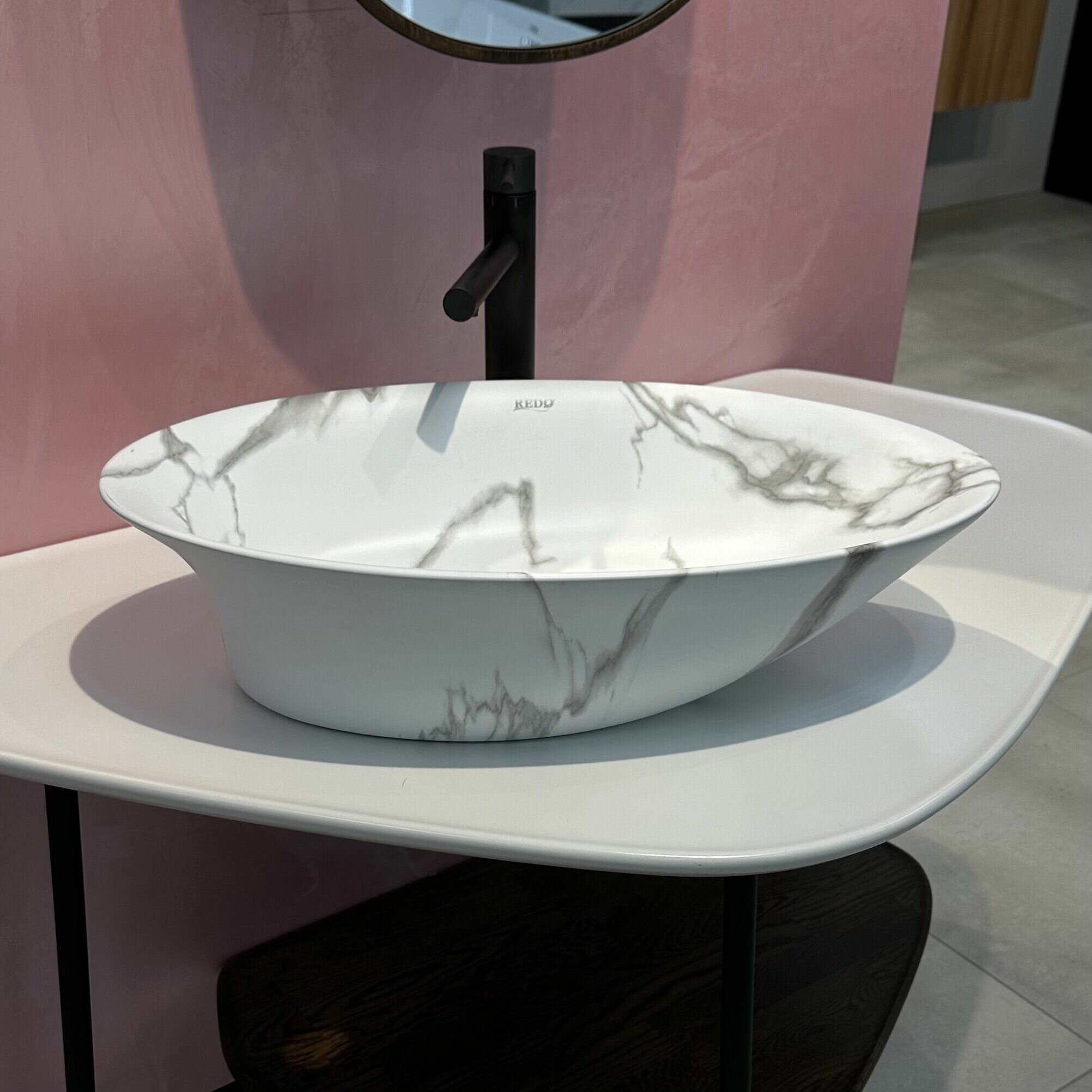 Купить RD-461MR Раковина накладная на столешницу, матовый белый мрамор