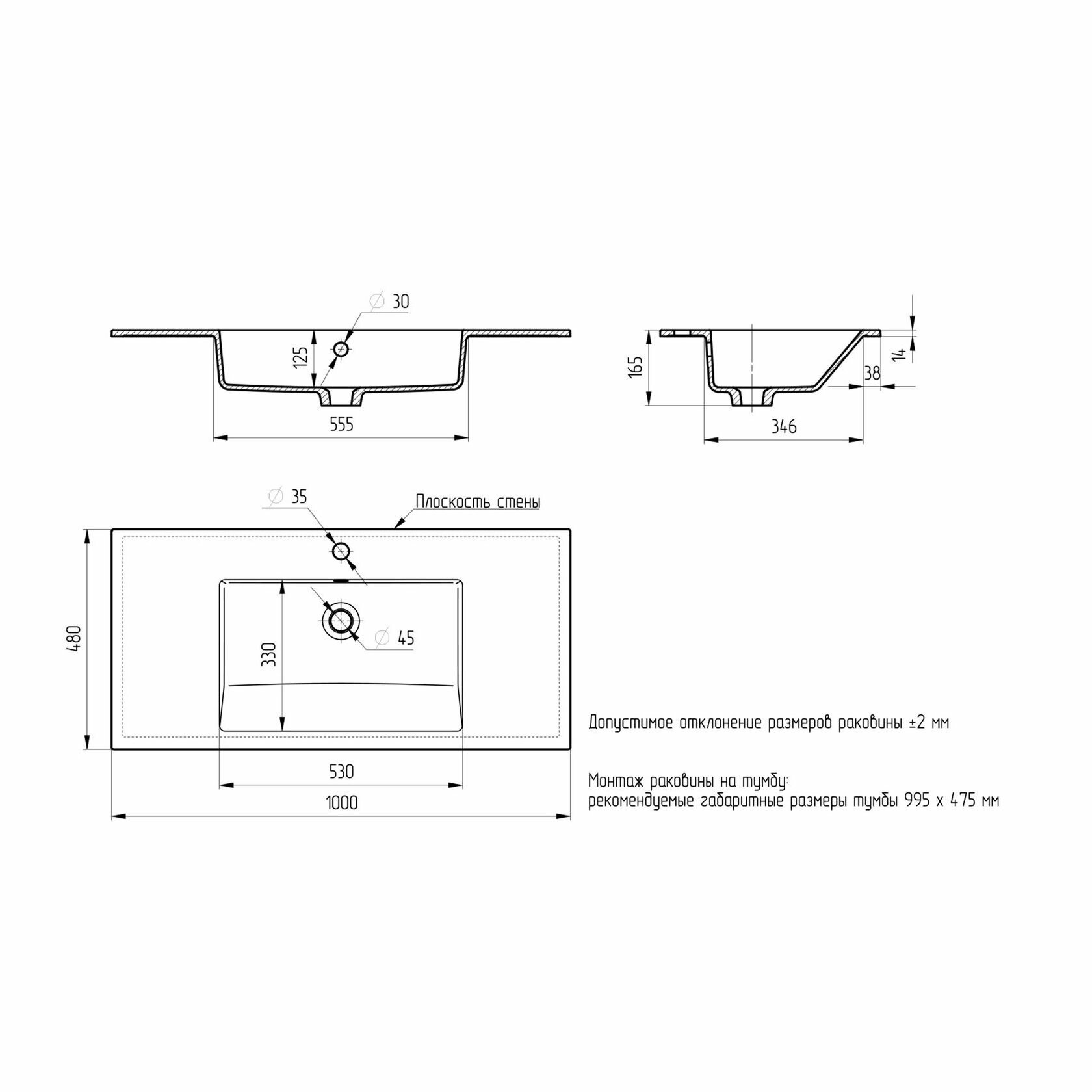 Раковина для ванной Uperwood Megan 100х48х16,5 см, белая матовая интересное: