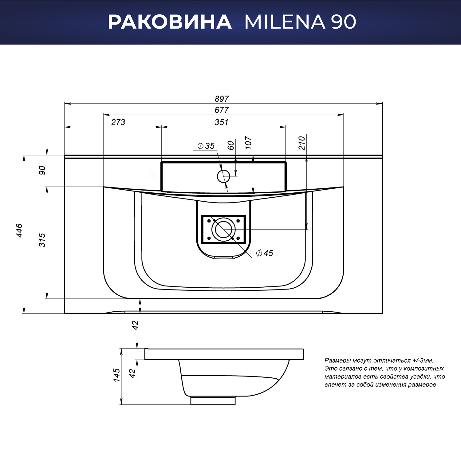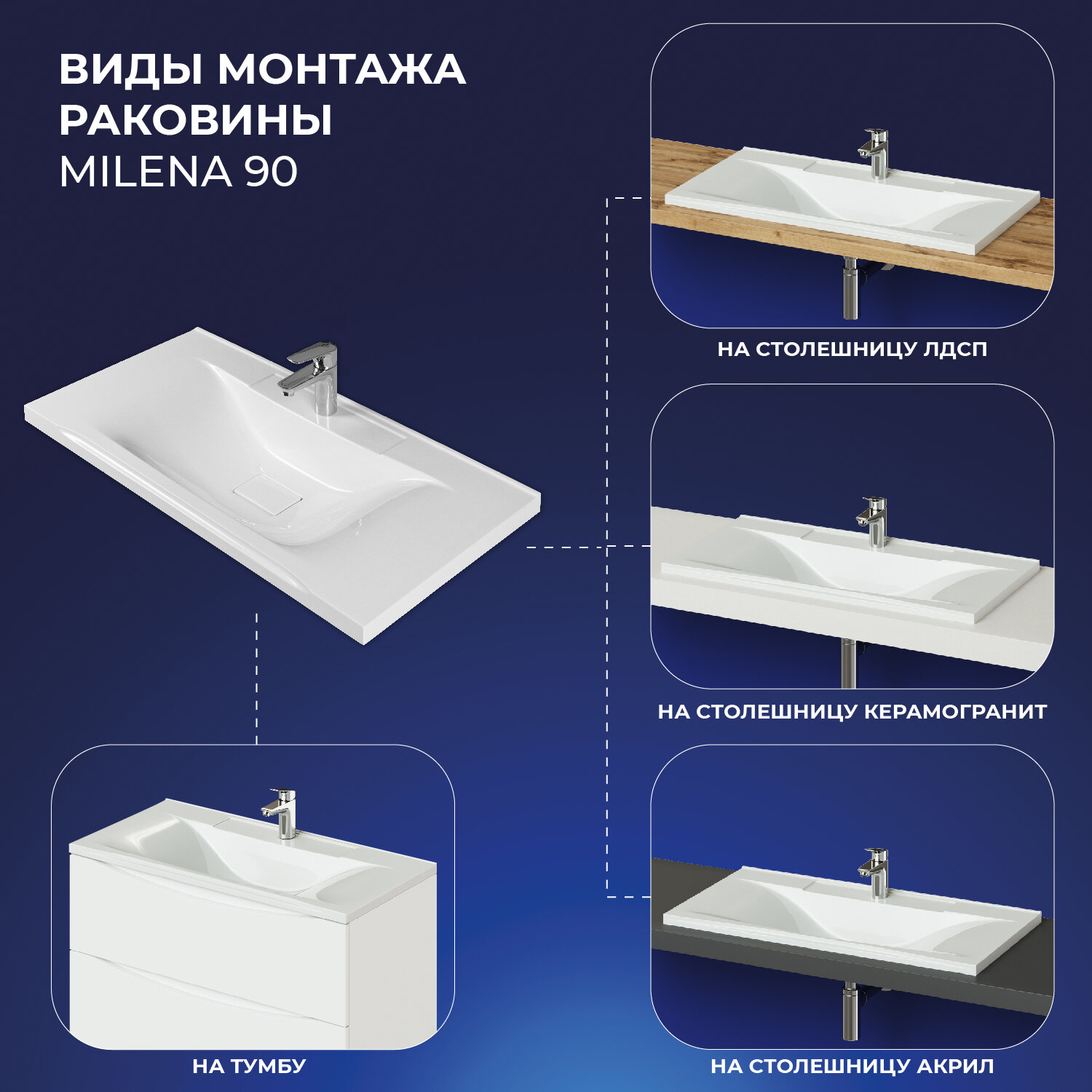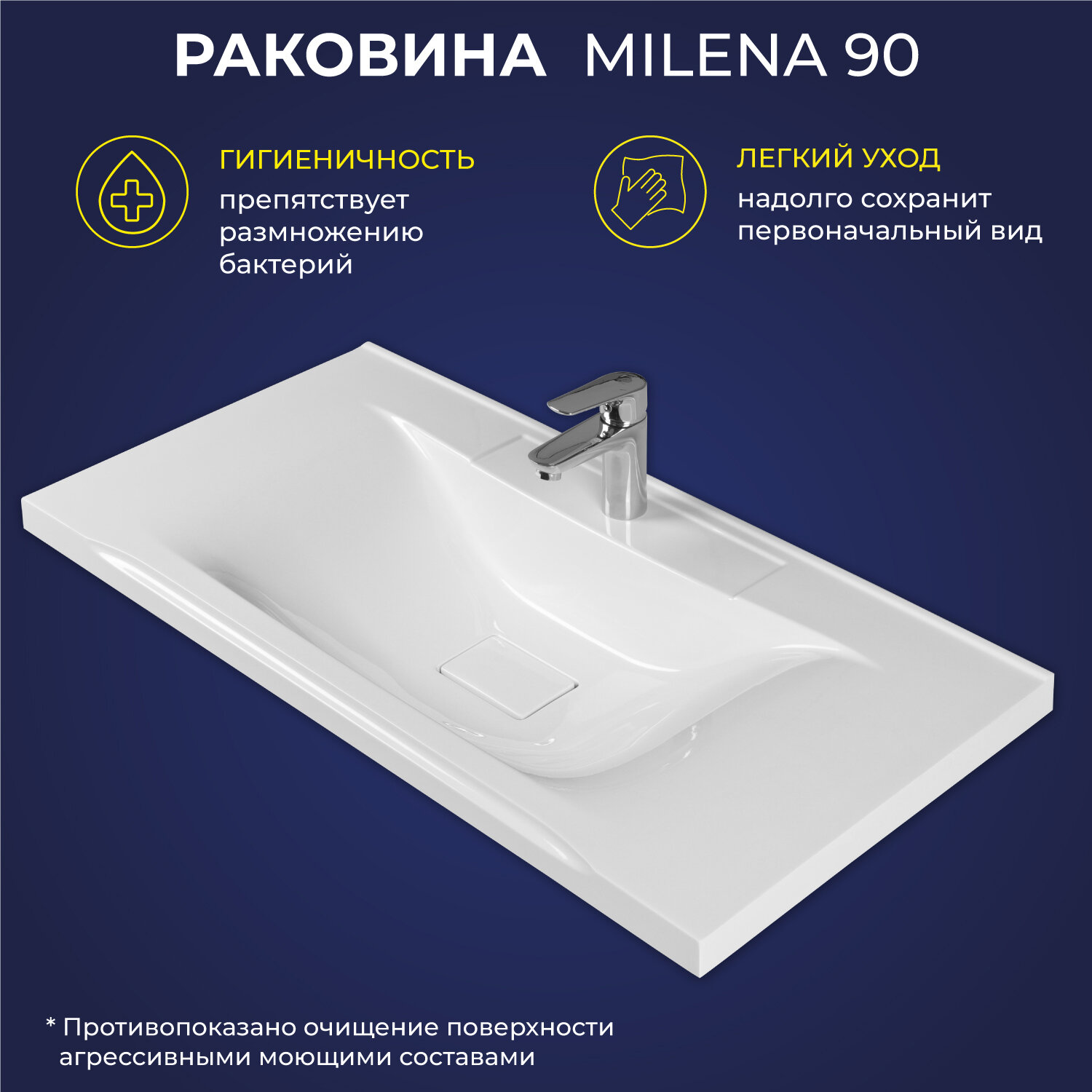 Раковина из искусственного камня для ванной ITANA Milena 90 897х447х153 Белый глянец интересное: