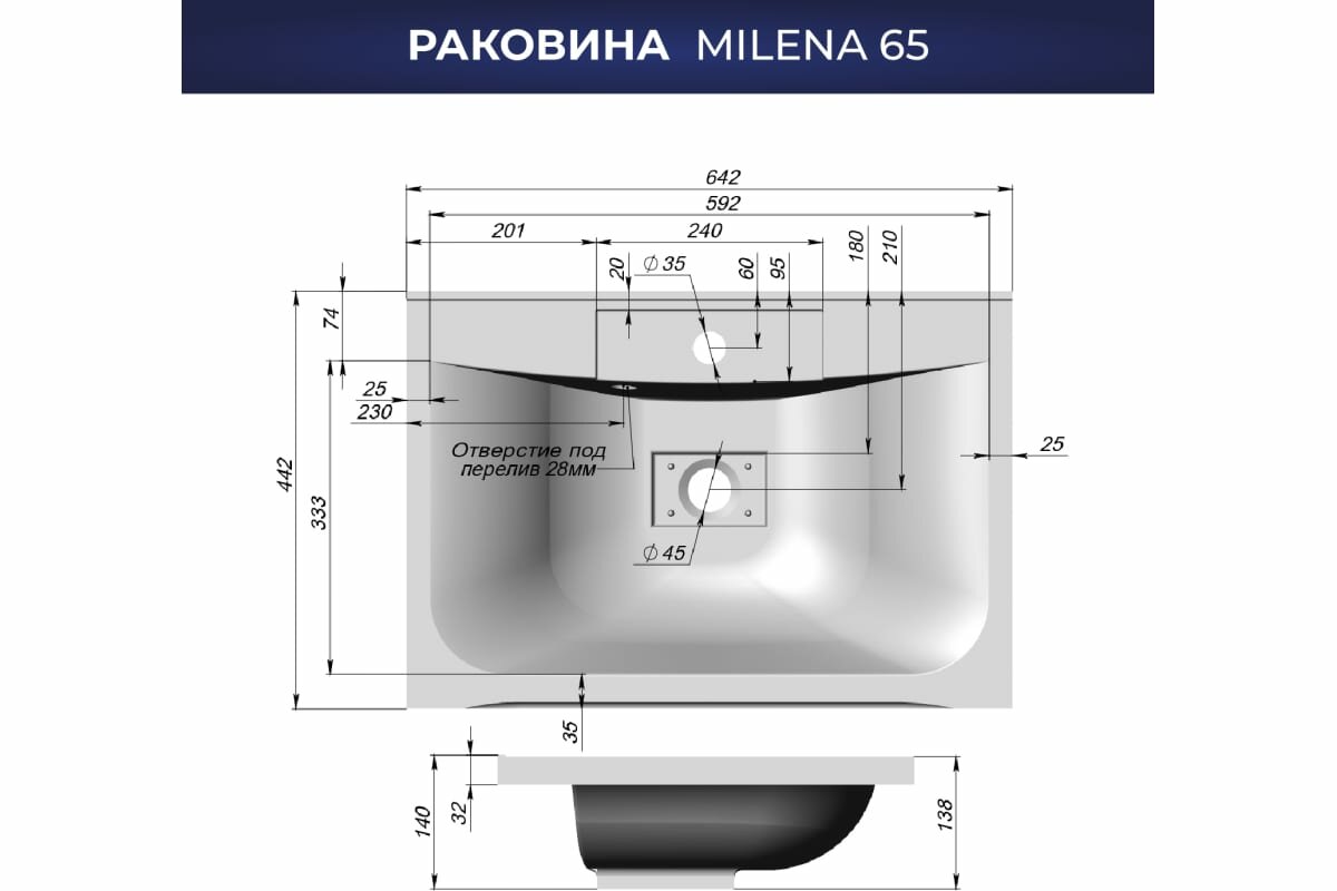 Раковина из искусственного камня для ванной ITANA Milena 65 642х442х140 Белый глянец интересное: