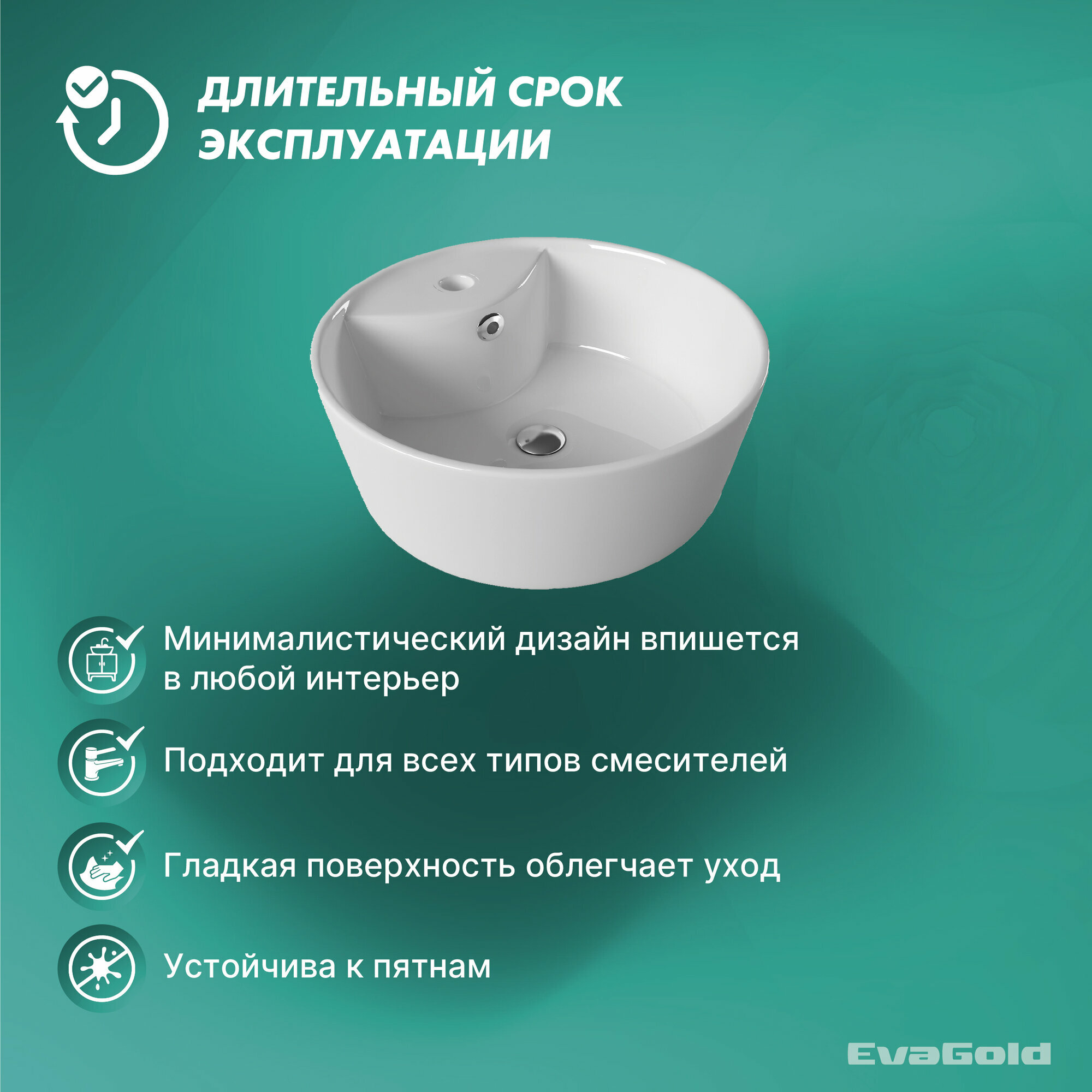 Раковина для ванной накладная EvaGold 410*410*165 мм, модель ND601.6 белый