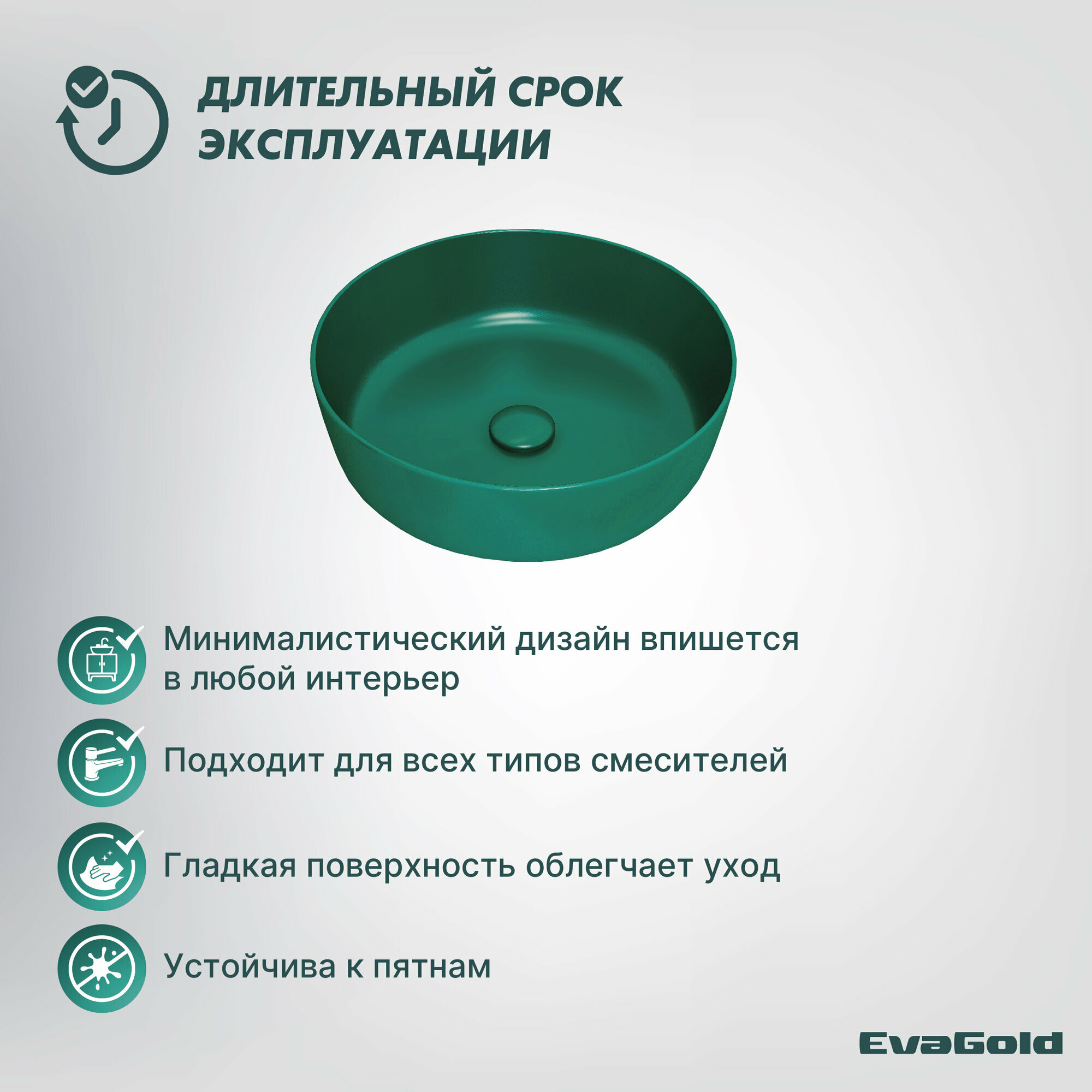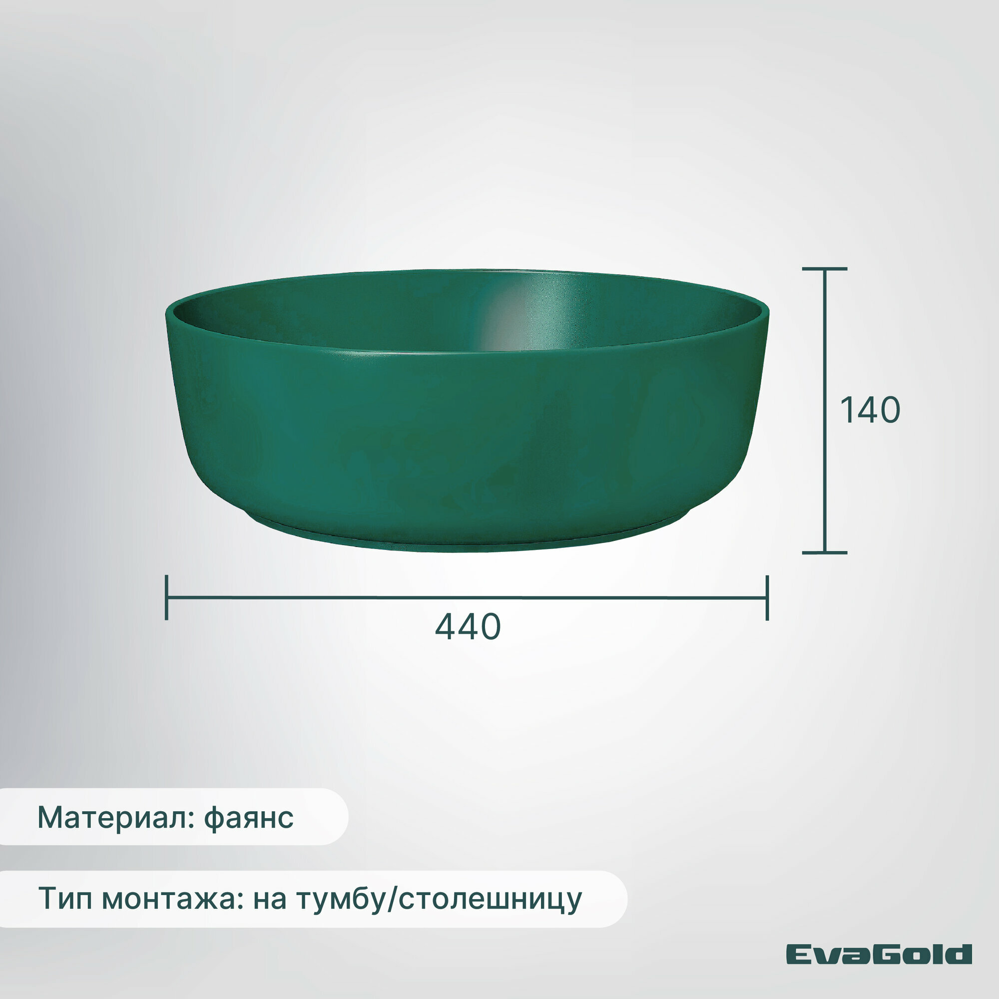 Купить Раковина для ванной накладная EvaGold 440*440*140 мм, модель ND601.25 Зеленый матовый