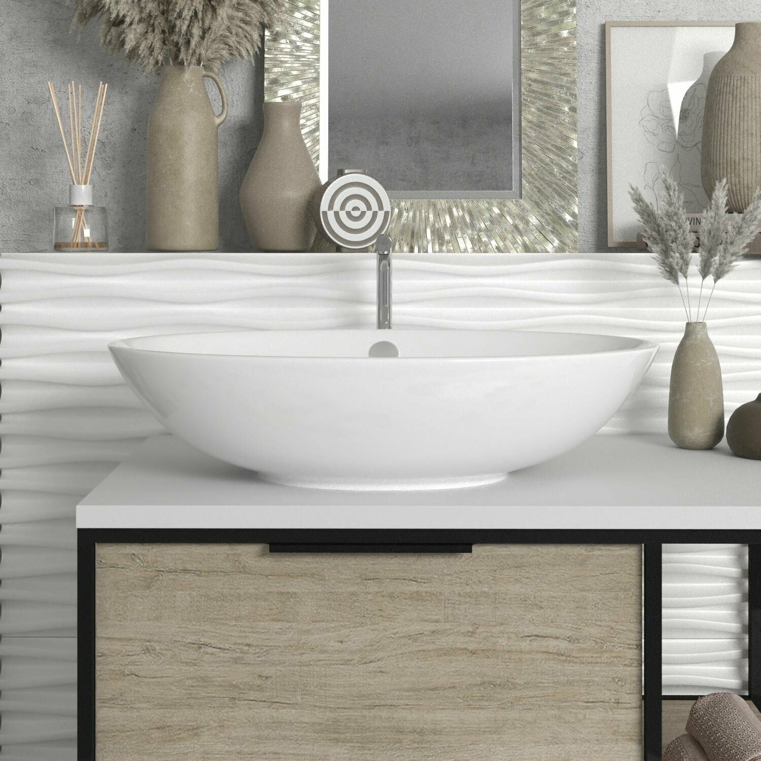 Купить Накладная раковина в ванную Helmken 70962000: умывальник овальный из фарфора 62 см, перелив, белый цвет