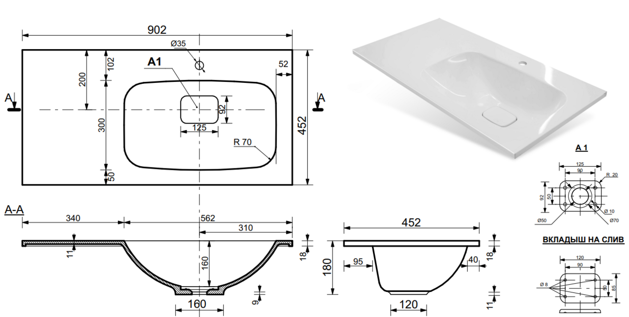 Раковина Taliente Barselona 90см белый, правое исполнение Размеры: Высота 180мм Глубина 452мм Ширина 900мм интересное: