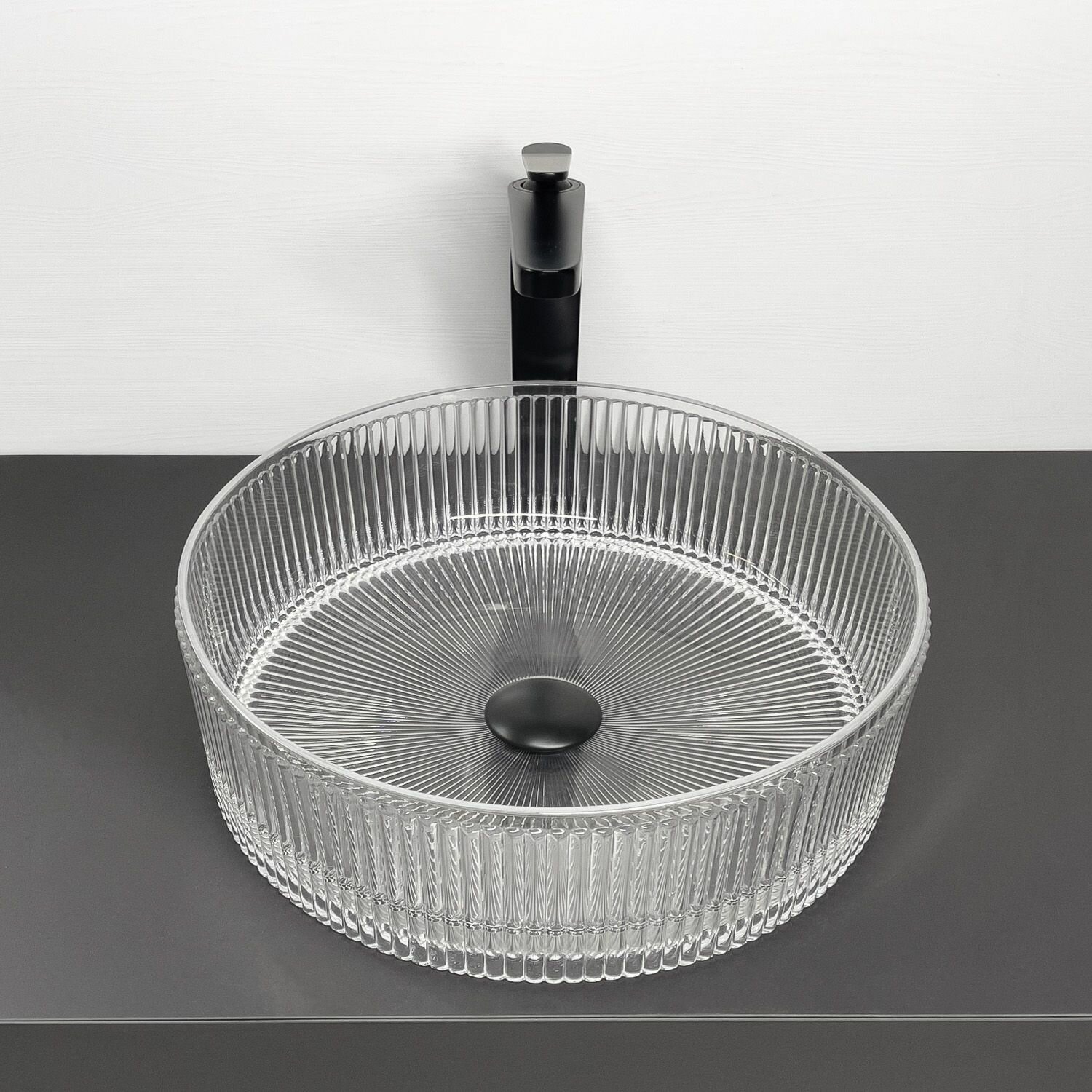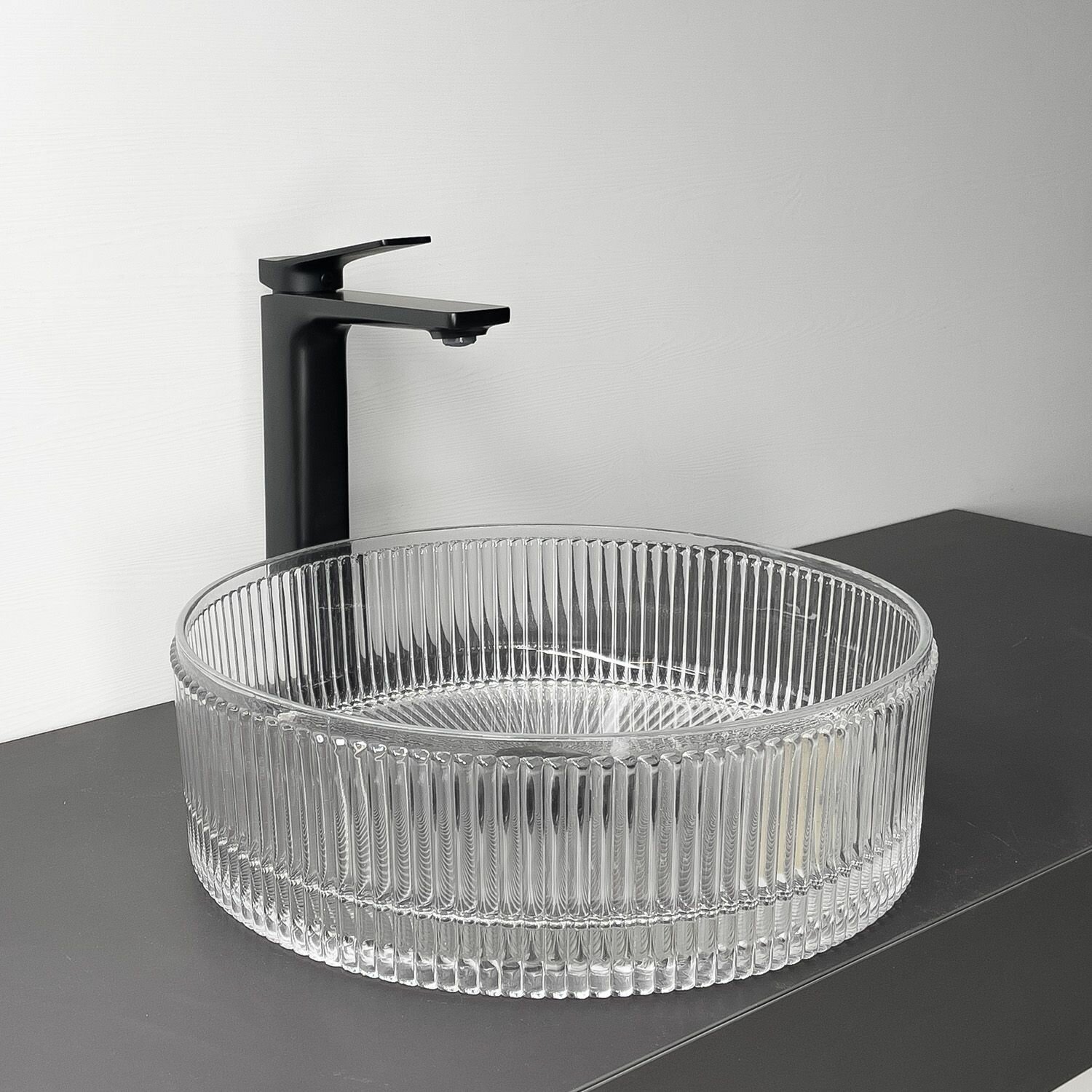 Накладная стеклянная раковина 40 см прозрачное стекло, рифленый борт Comforty CF21002S на столешницу интересное: