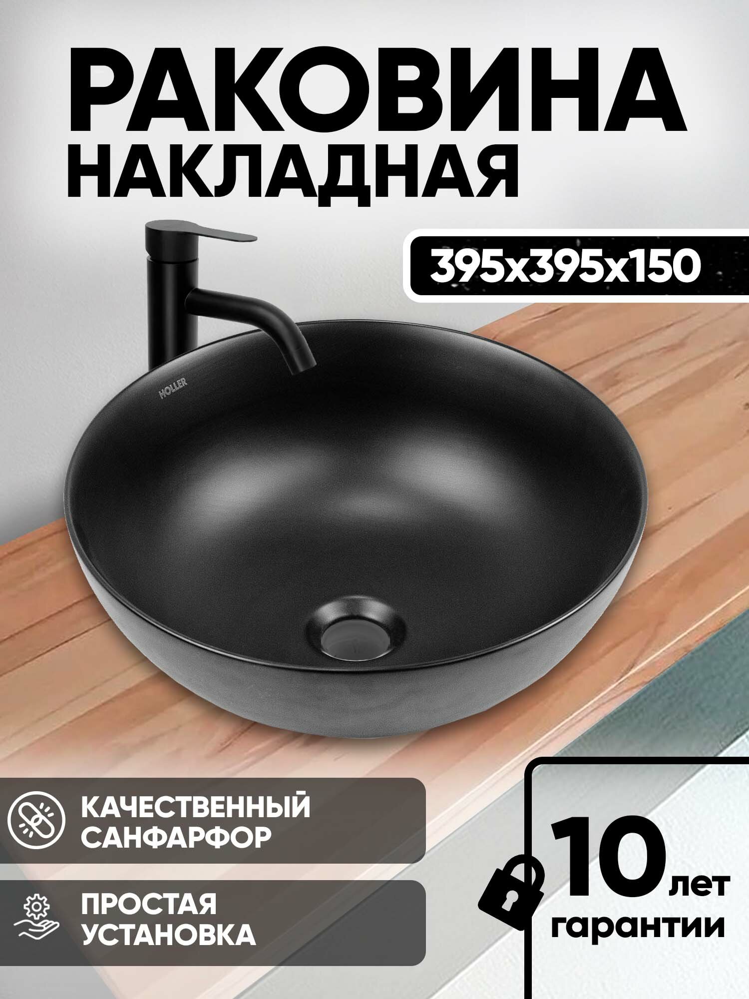 Раковина накладная K-M6224B (395*395*150мм), черный матовый интересное: