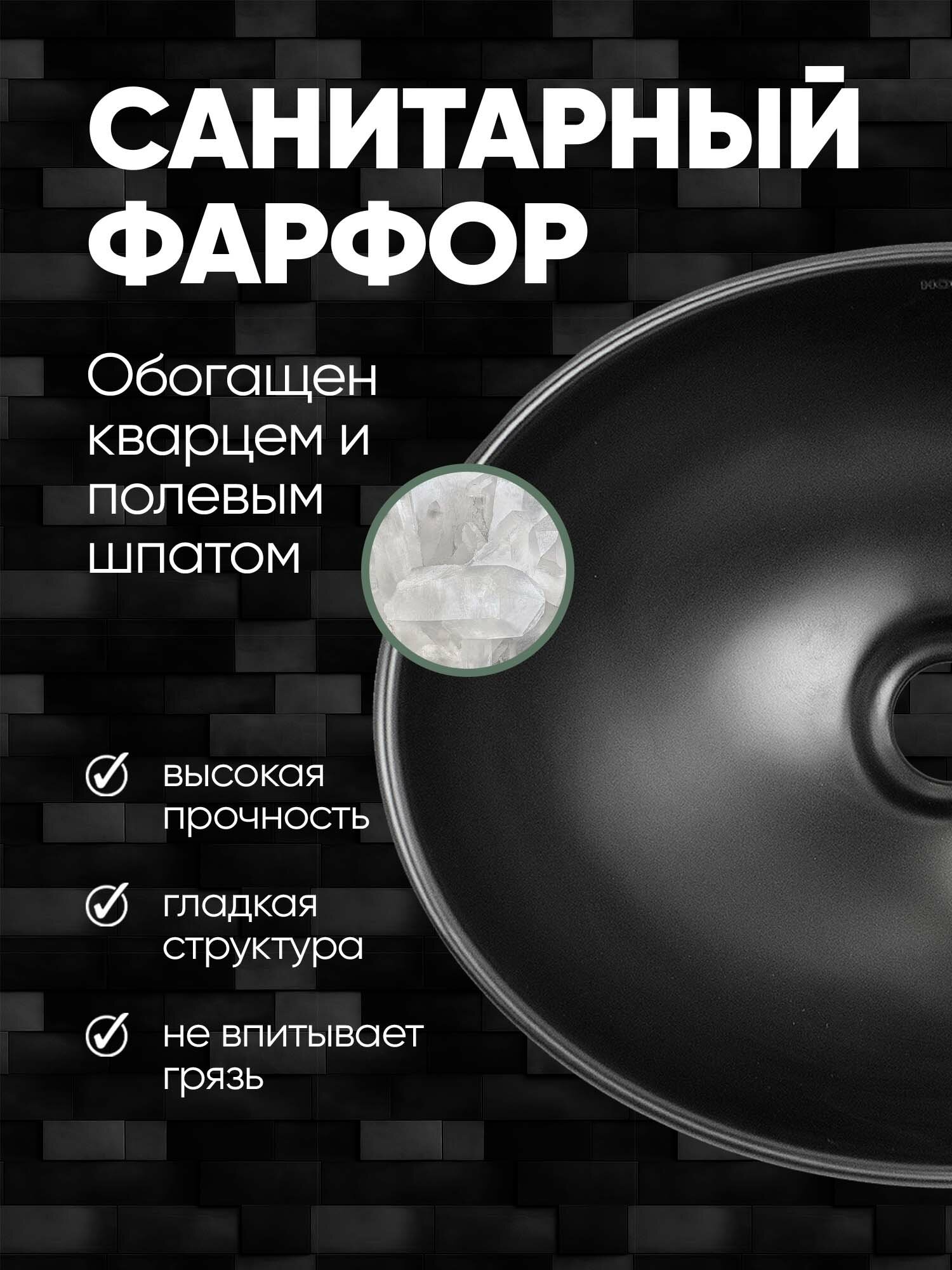 Раковина накладная K-M6066B (410*340*145мм), черный матовый интересное: