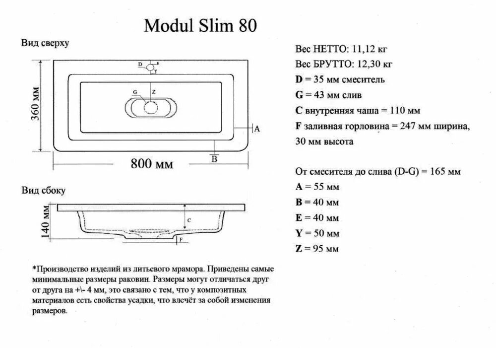 Встраиваемая раковина Madera Modul Slim 80 интересное: