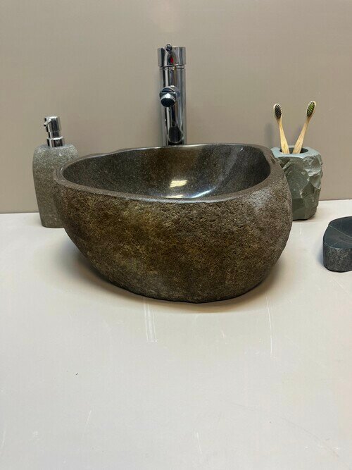 Раковина накладная из речного камня (48х35х15см) INR-020