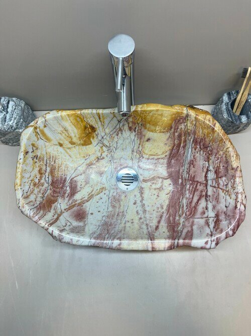 Раковина накладная из речного камня (48х35х15см) INR-020