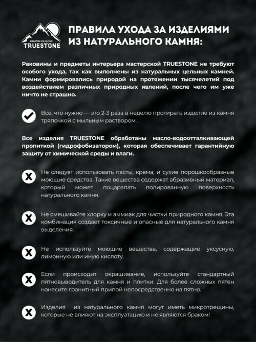 Раковина из камня, порфировидный гранит от TrueStone (48х32х13см) RK-063