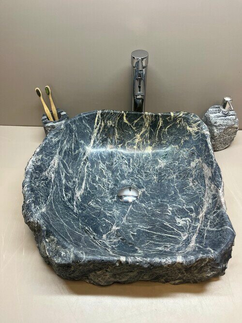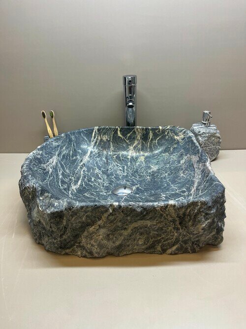 Раковина из натурального уральского камня серо-зеленого мрамора (67х46х15см) RK-105