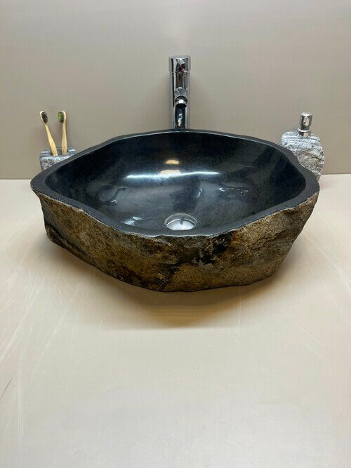 Раковина накладная из речного камня (48х35х15см) INR-020