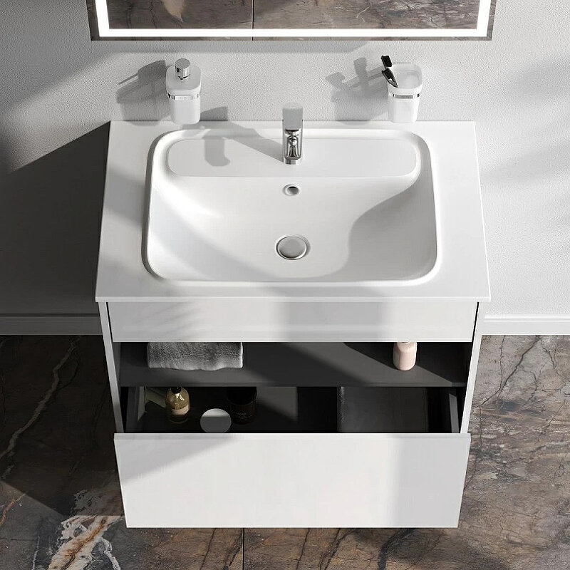 Раковина AM.PM Func 60 M8FWPC0600WM Белая матовая искусственный камень (литьевой мрамор) полувстраиваемая