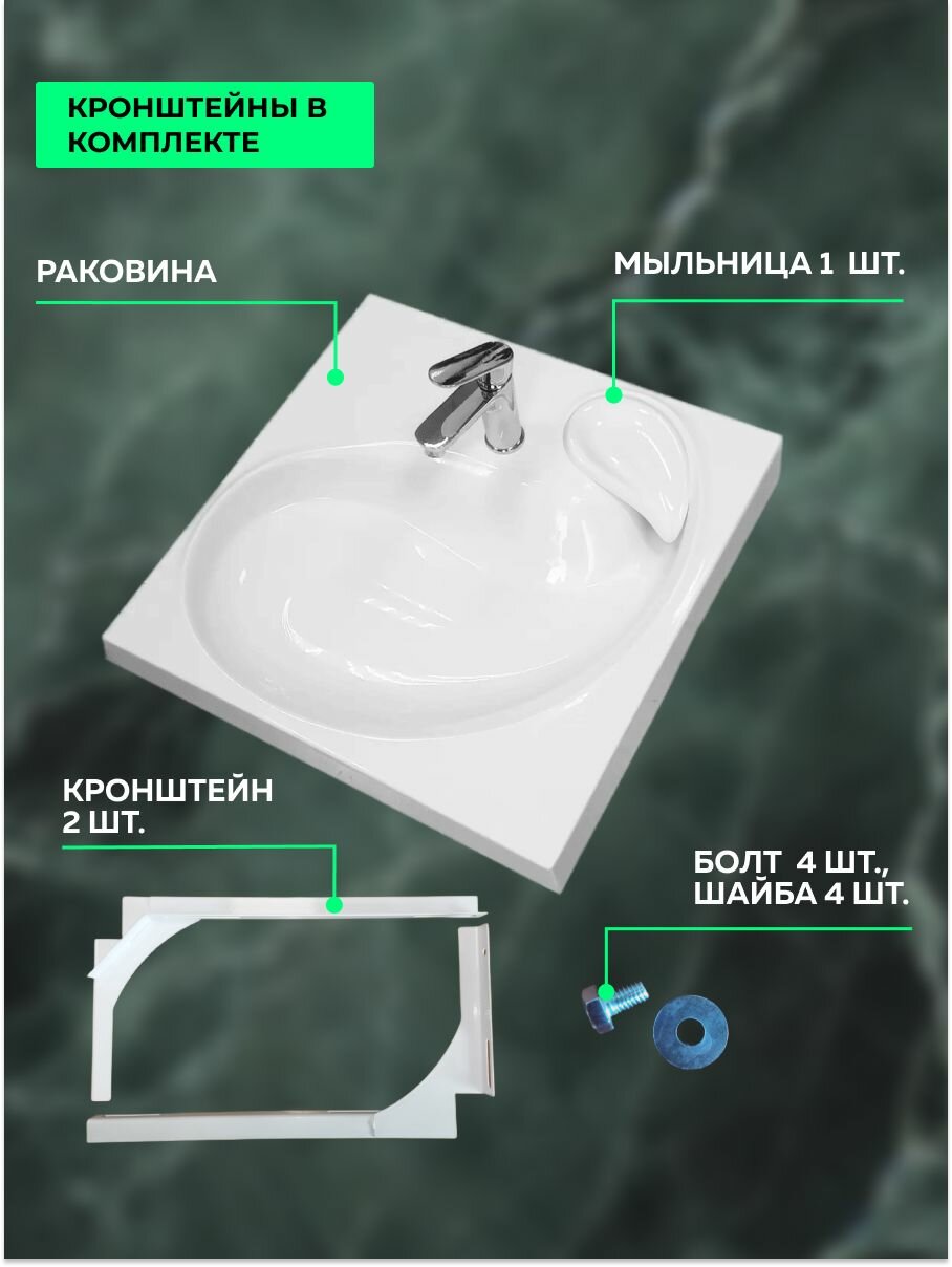 Раковина над стиральной машиной Premial Flores (60х60), чаша капля, слив справа, цвет белый интересное: