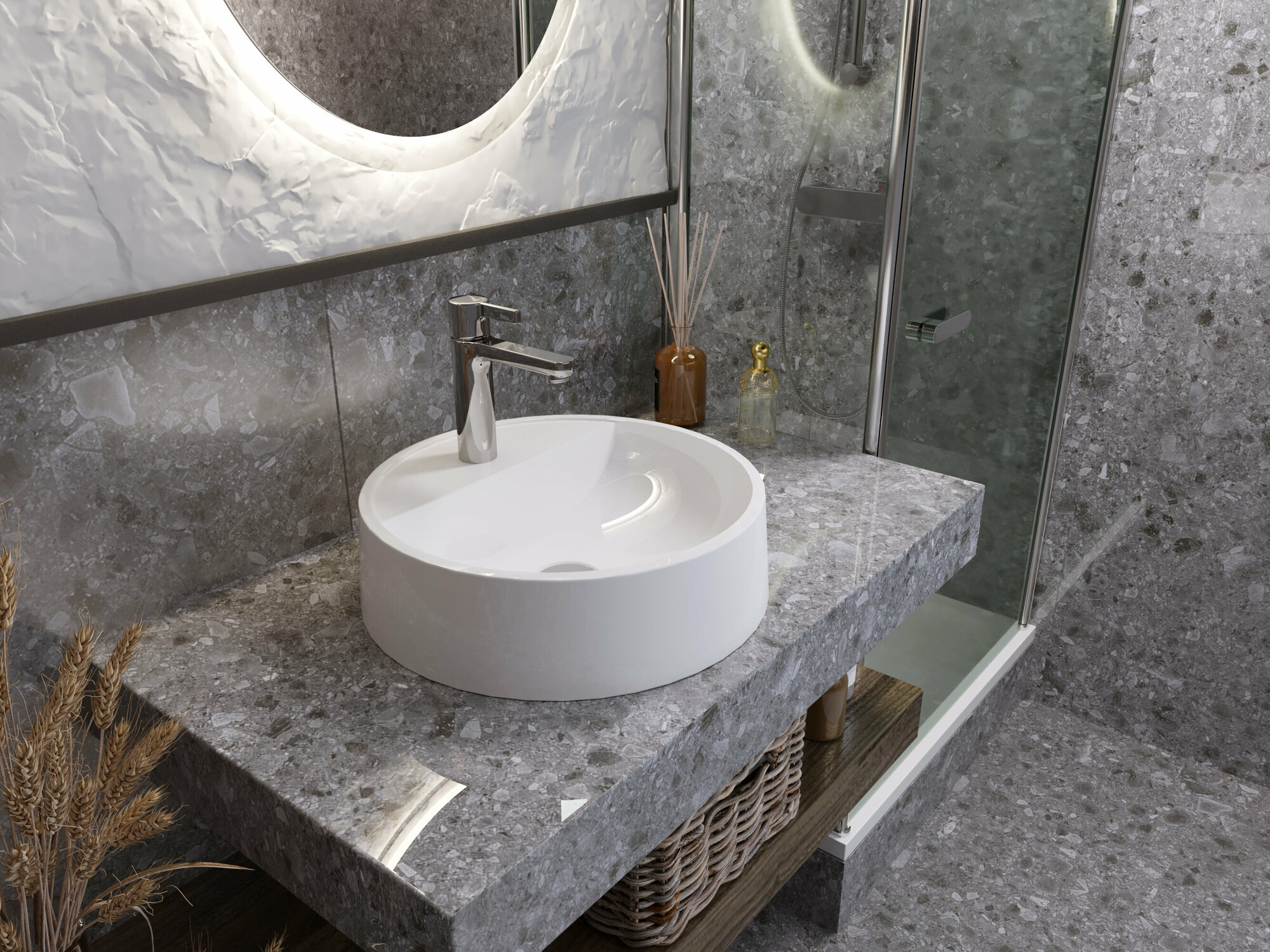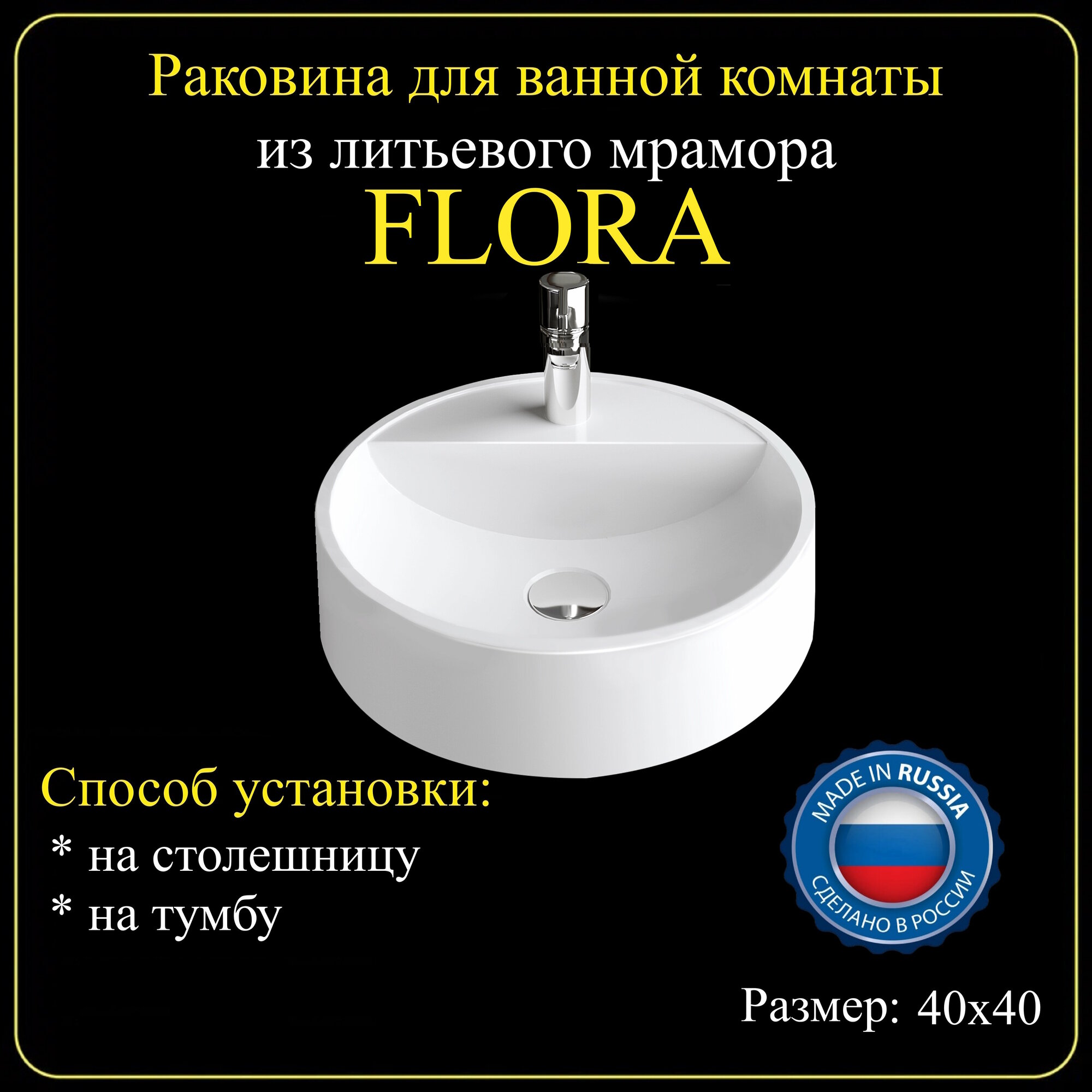 Раковина накладная для ванной комнаты «FLORA» 40х40 интересное: