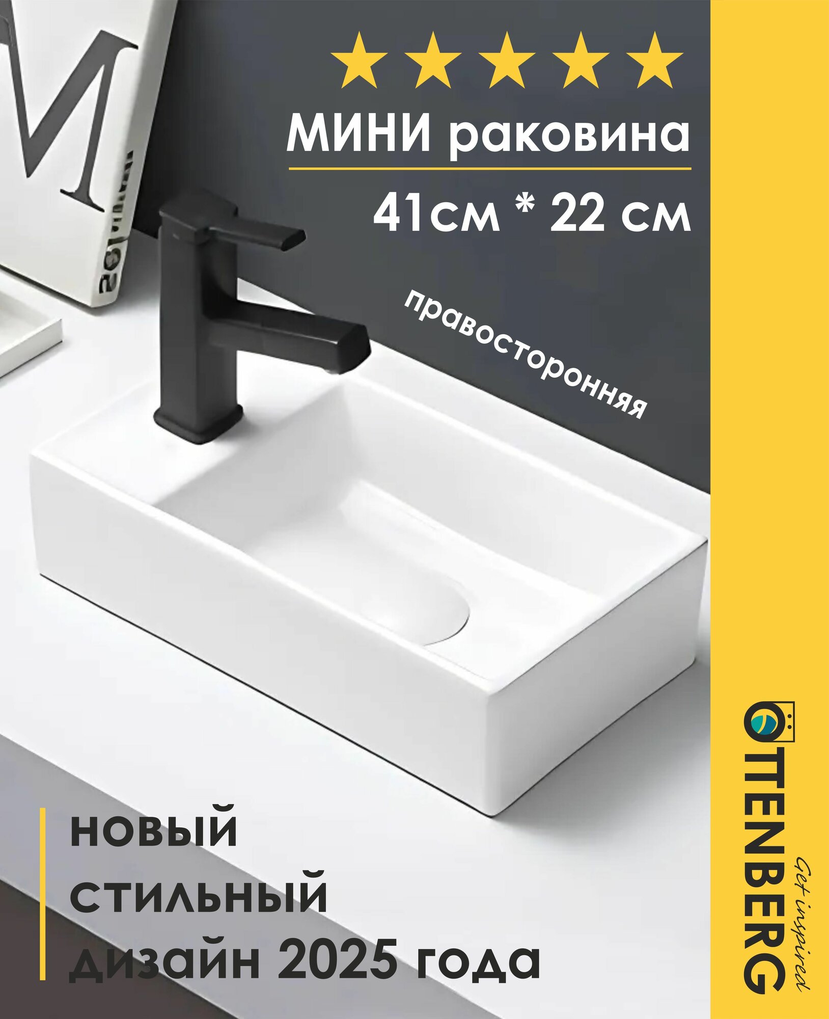 Подвесная мини раковина для туалета правосторонняя белая прямоугольная Ottenberg, 41х22х10см интересное: