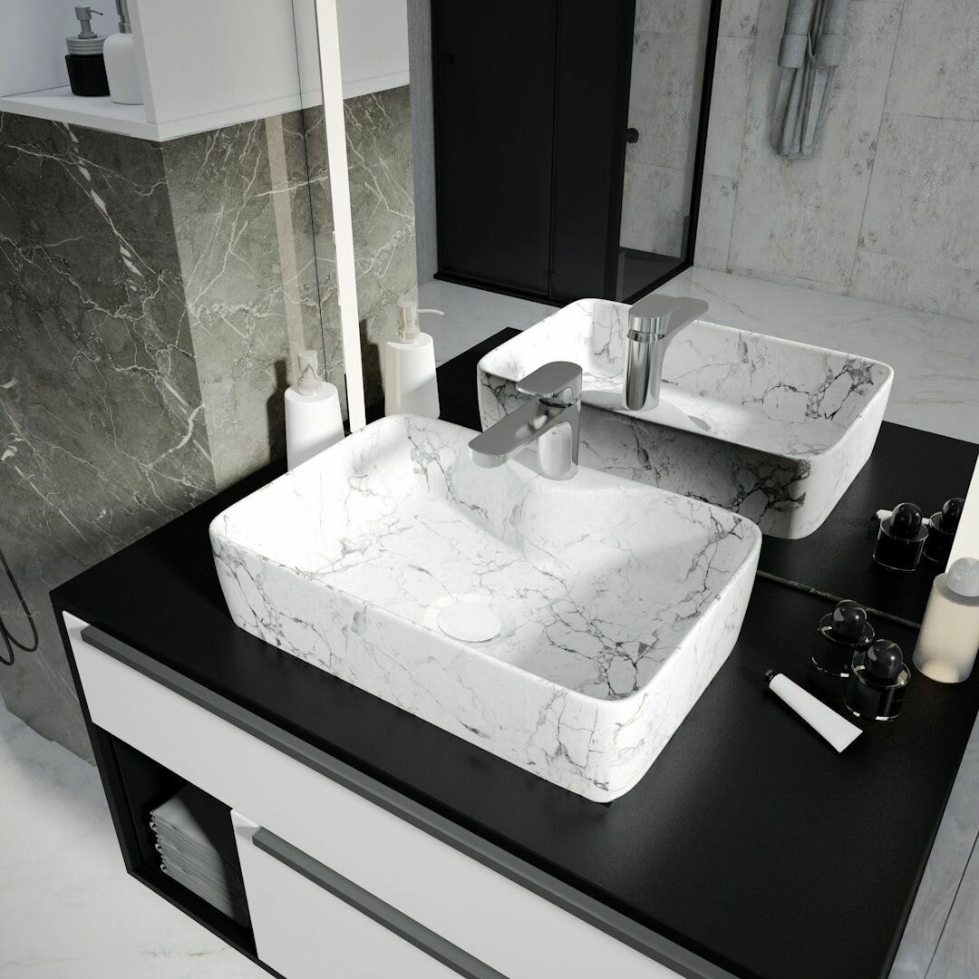Раковина для ванной накладная Teymi Helmi S 48 цвет белый мрамор T50298 интересное: