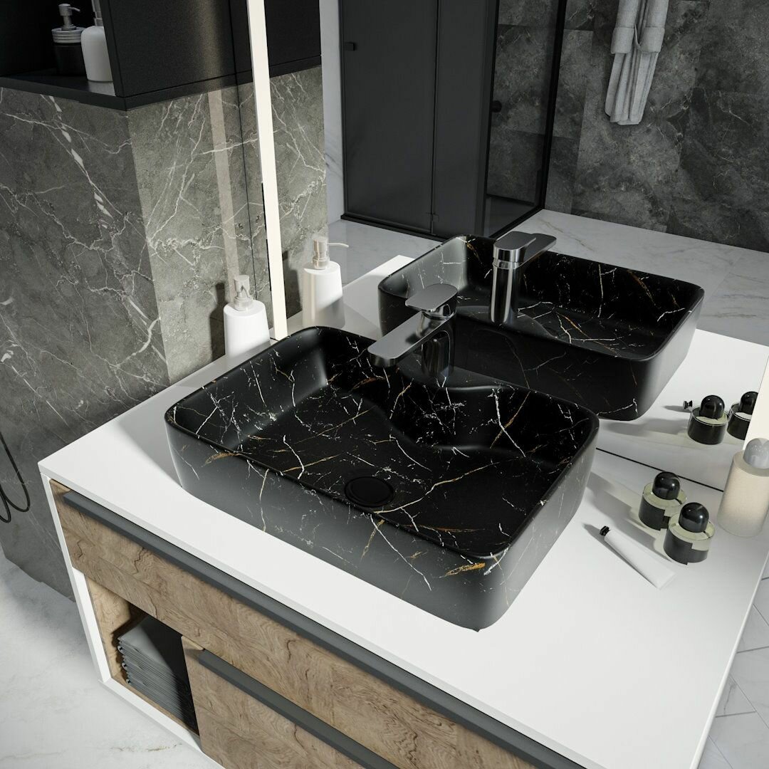 Раковина для ванной накладная Teymi Helmi S 48 цвет черный мрамор T50299 интересное: