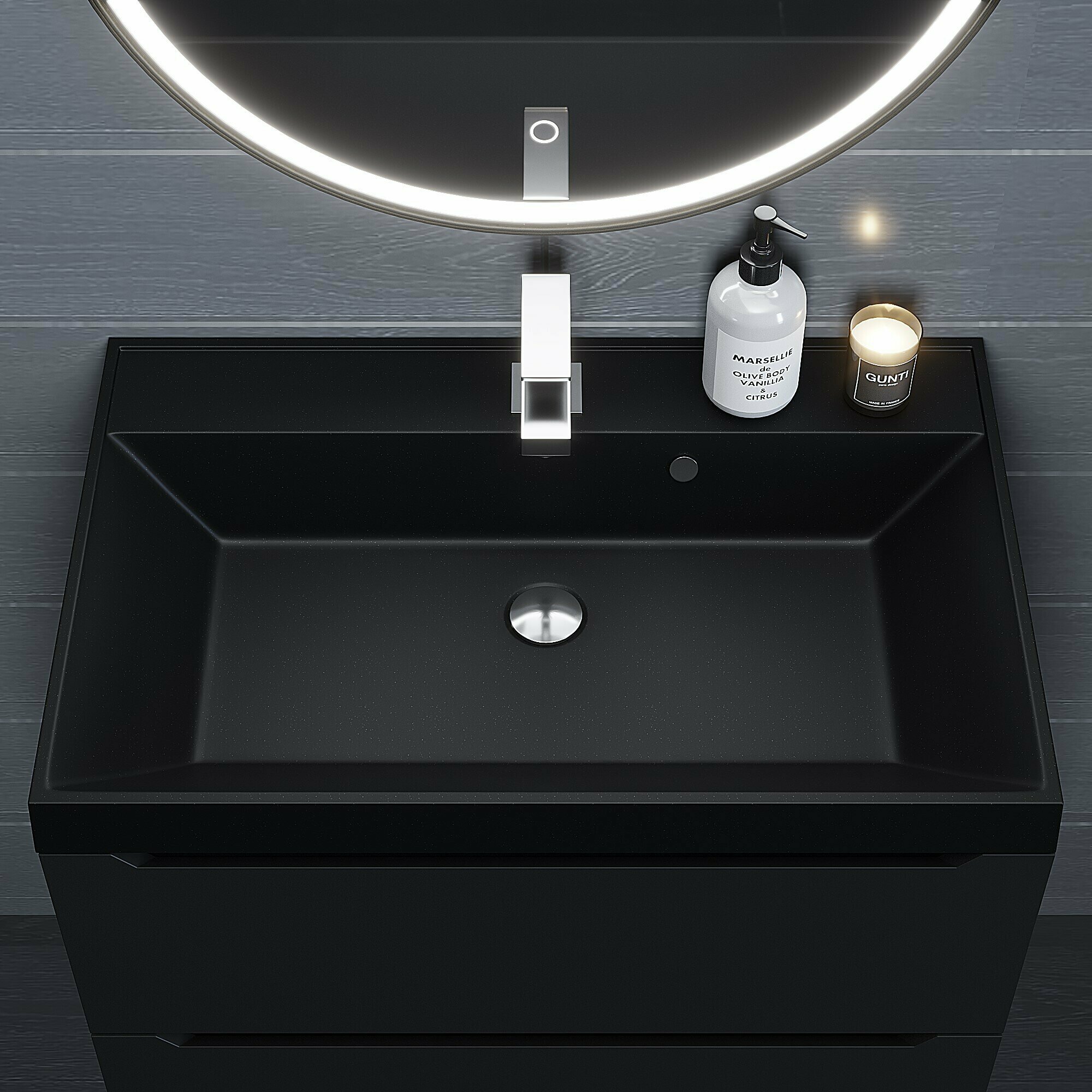 Раковина для ванной кварцевая Uperwood Classic Quartz 70х45х15 см, черная матовая, уголь