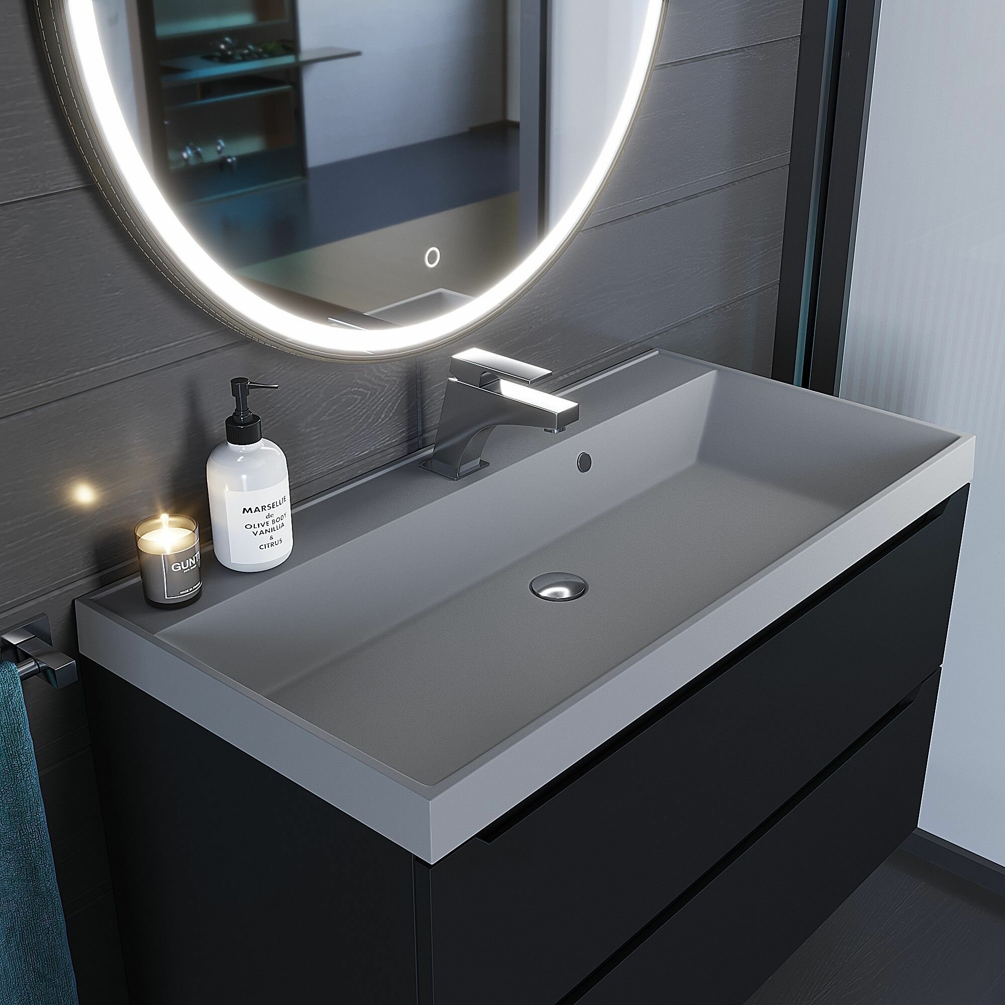 Раковина для ванной кварцевая Uperwood Classic Quartz 90х45х15 см, черная матовая, уголь