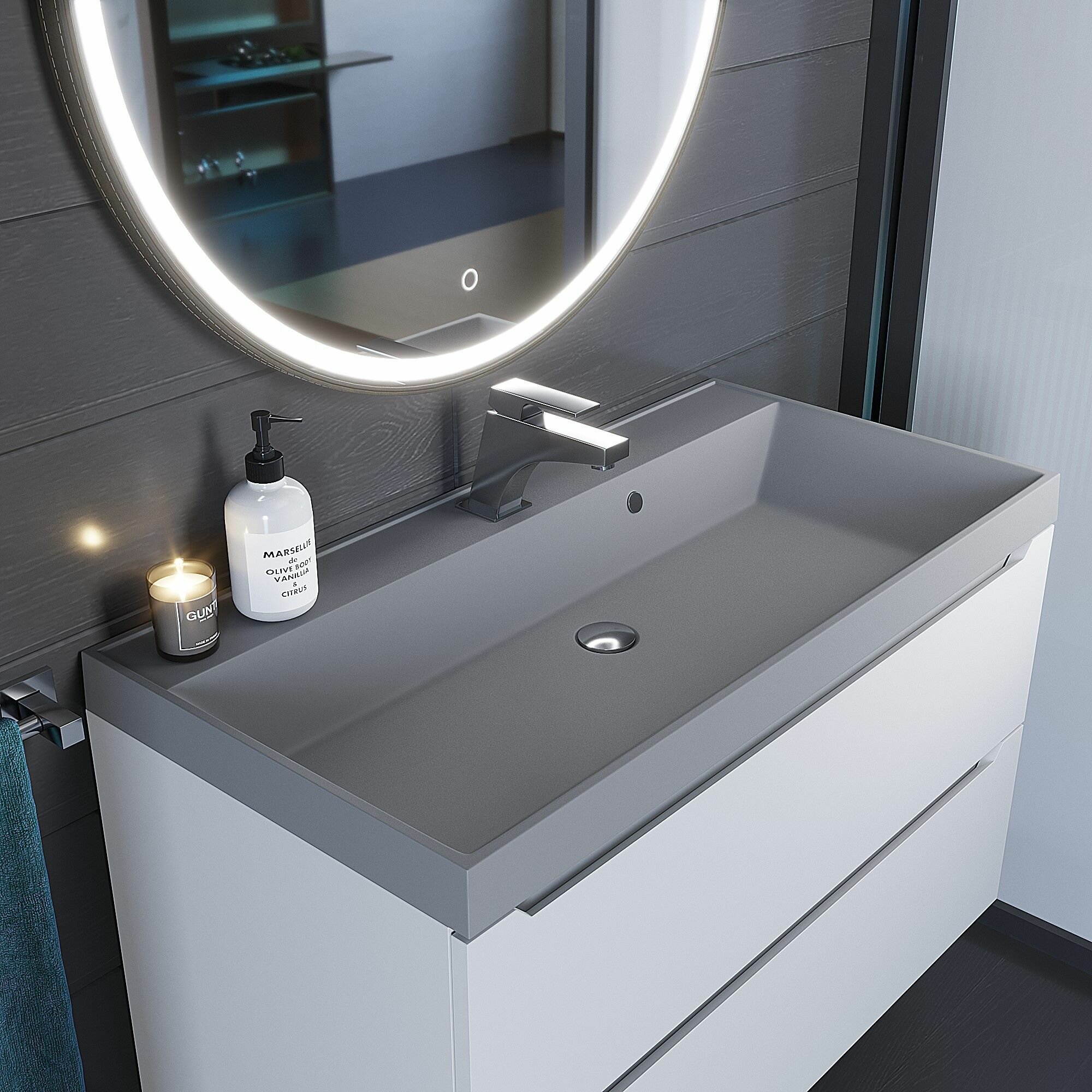 СохранитьРаковина для ванной кварцевая Uperwood Classic Quartz 100х45х15 см, серая матовая, бетон интересное:
