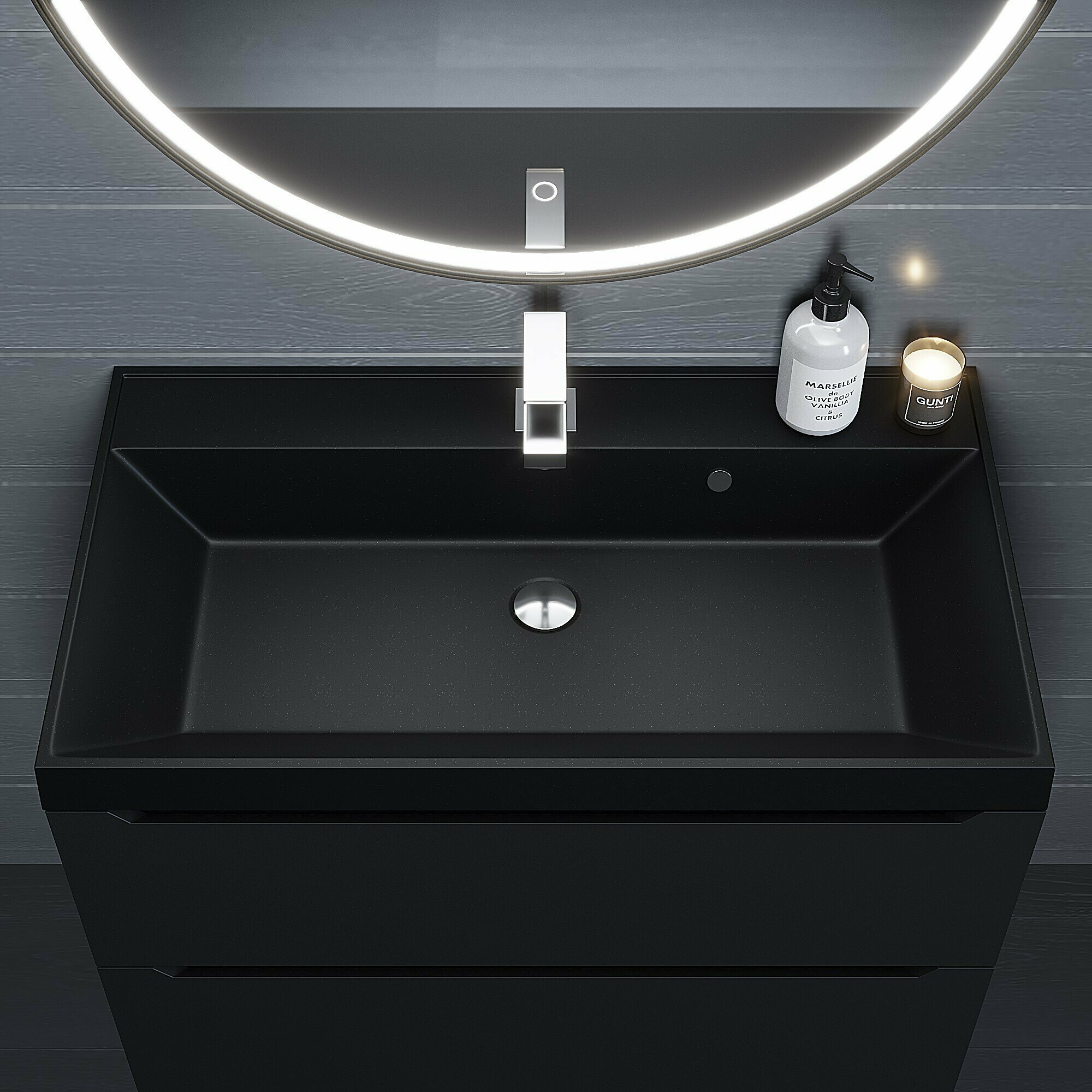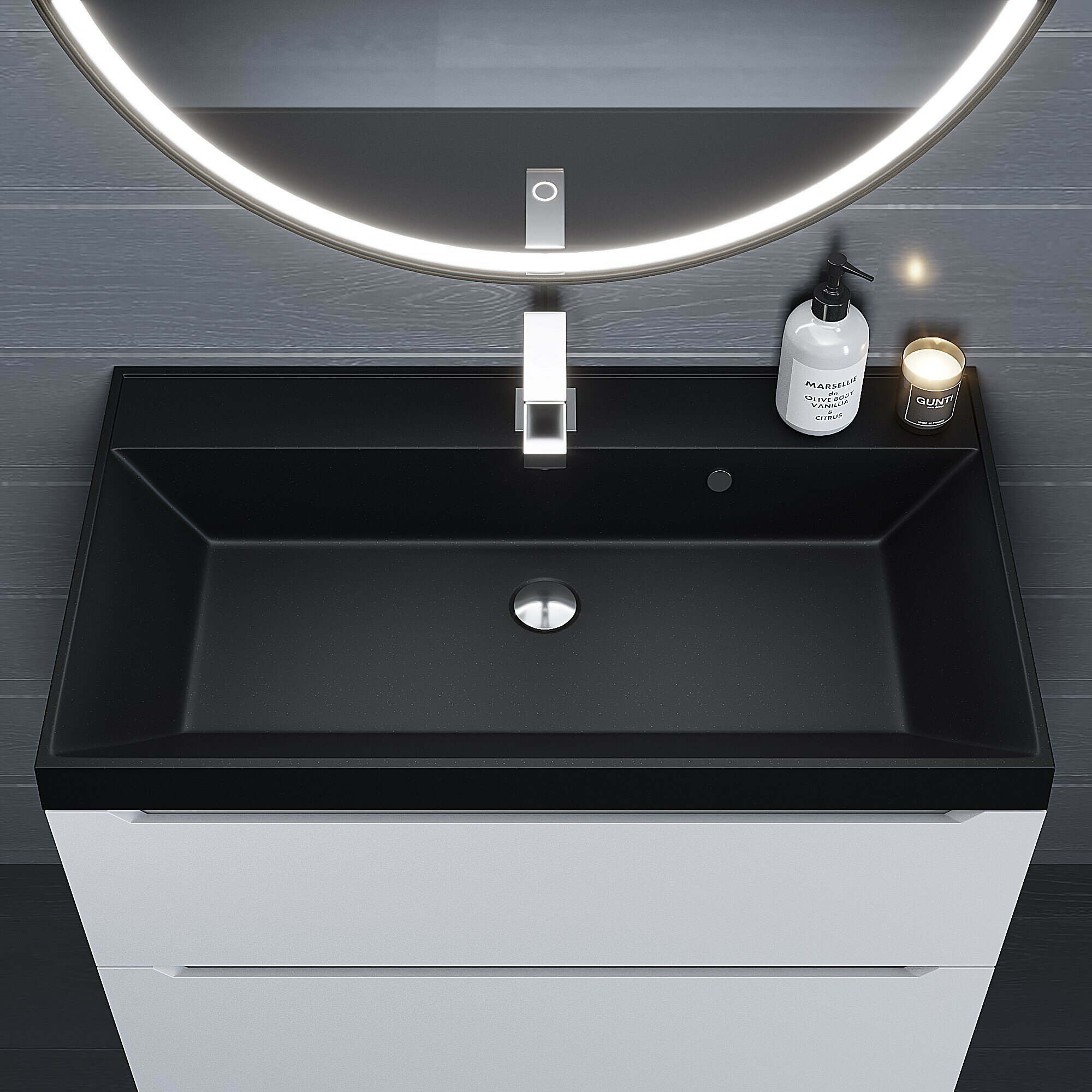 Раковина для ванной кварцевая Uperwood Classic Quartz 80х45х15 см, черная матовая, уголь