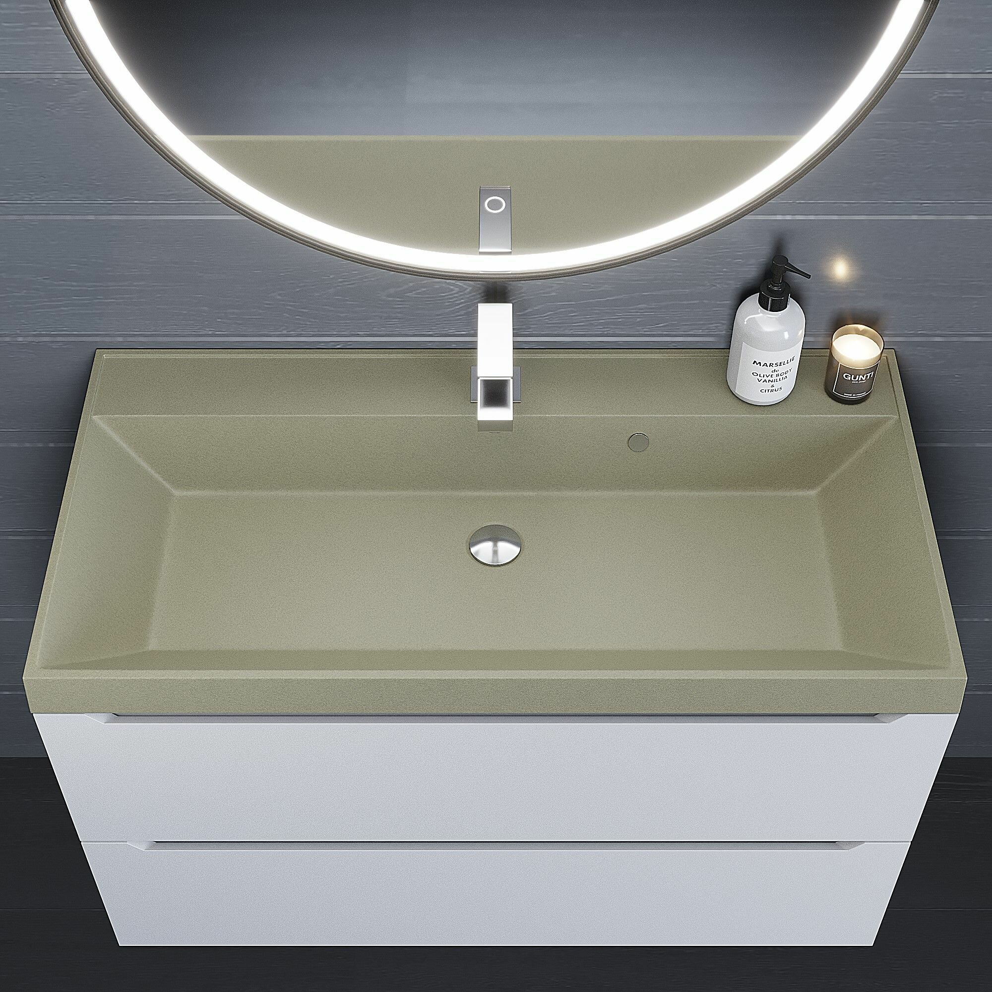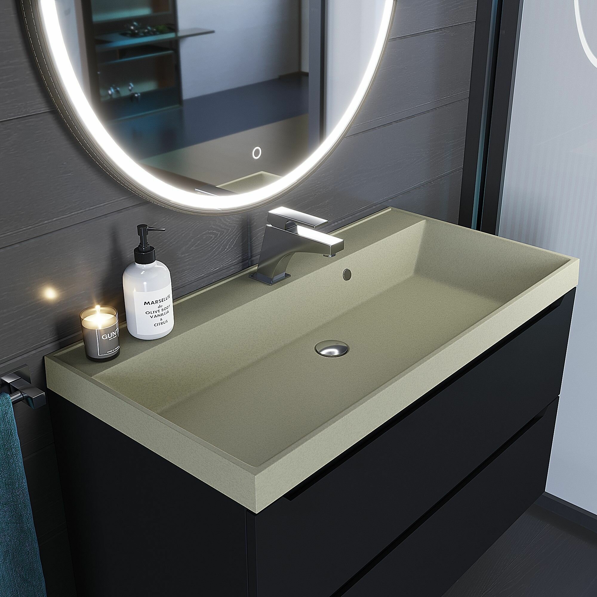 Раковина для ванной кварцевая Uperwood Classic Quartz 100х45х15 см, серая матовая, бетон