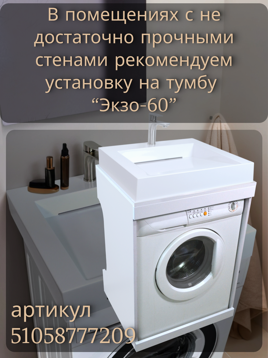 Купить Раковина для установки над стиральной машиной 60x60 "Техно-60", цвет белый, щелевой слив, литьевой мрамор