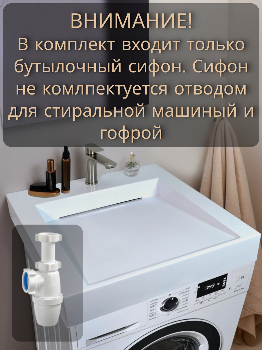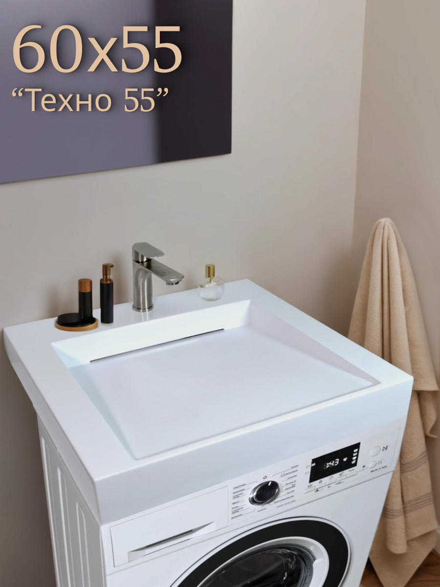Купить Раковина для установки над стиральной машиной 60x55 "Техно-55", цвет белый, щелевой слив, литьевой мрамор