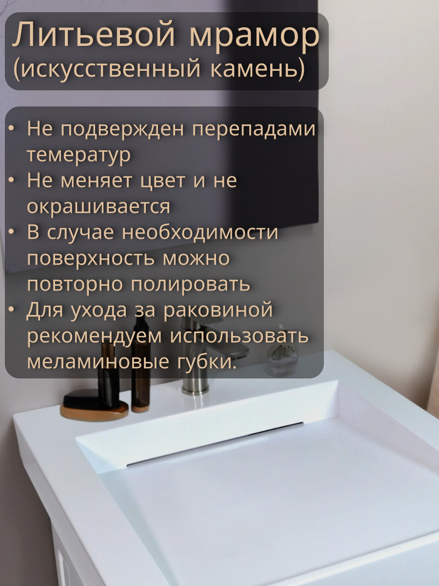 Раковина для установки над стиральной машиной 60x50 "Техно-50", цвет белый, щелевой слив, литьевой мрамор