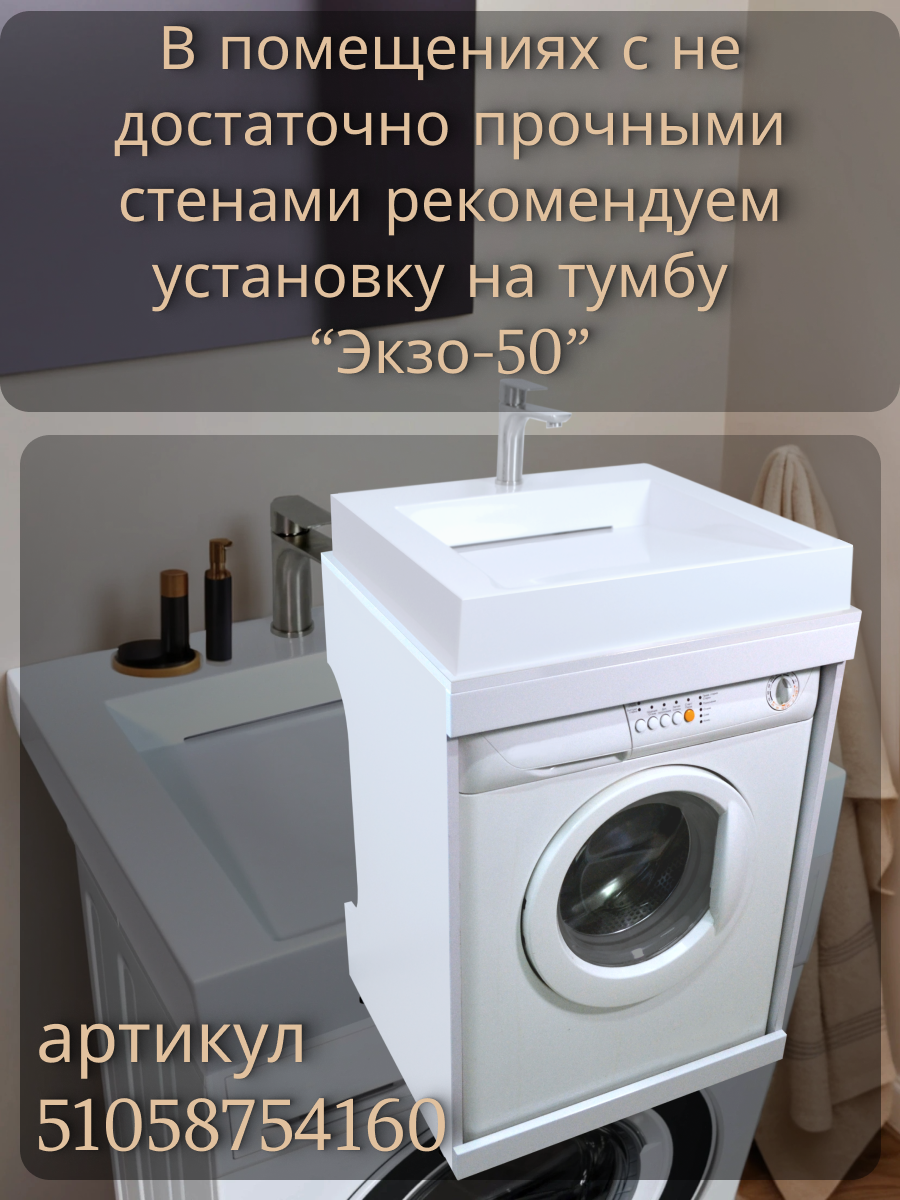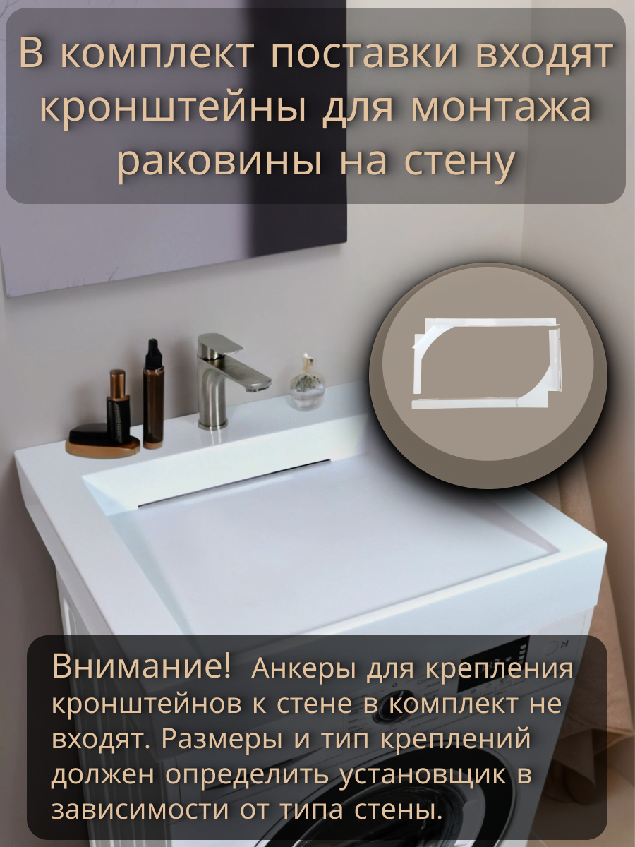 СохранитьРаковина для установки над стиральной машиной 60x50 "Техно-50", цвет белый, щелевой слив, литьевой мрамор интересное: