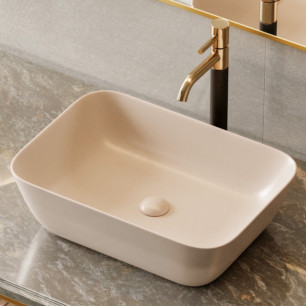 Раковина накладная прямоугольная ABBER Rechteck (AC2200MBE) светло-бежевая матовая интересное: