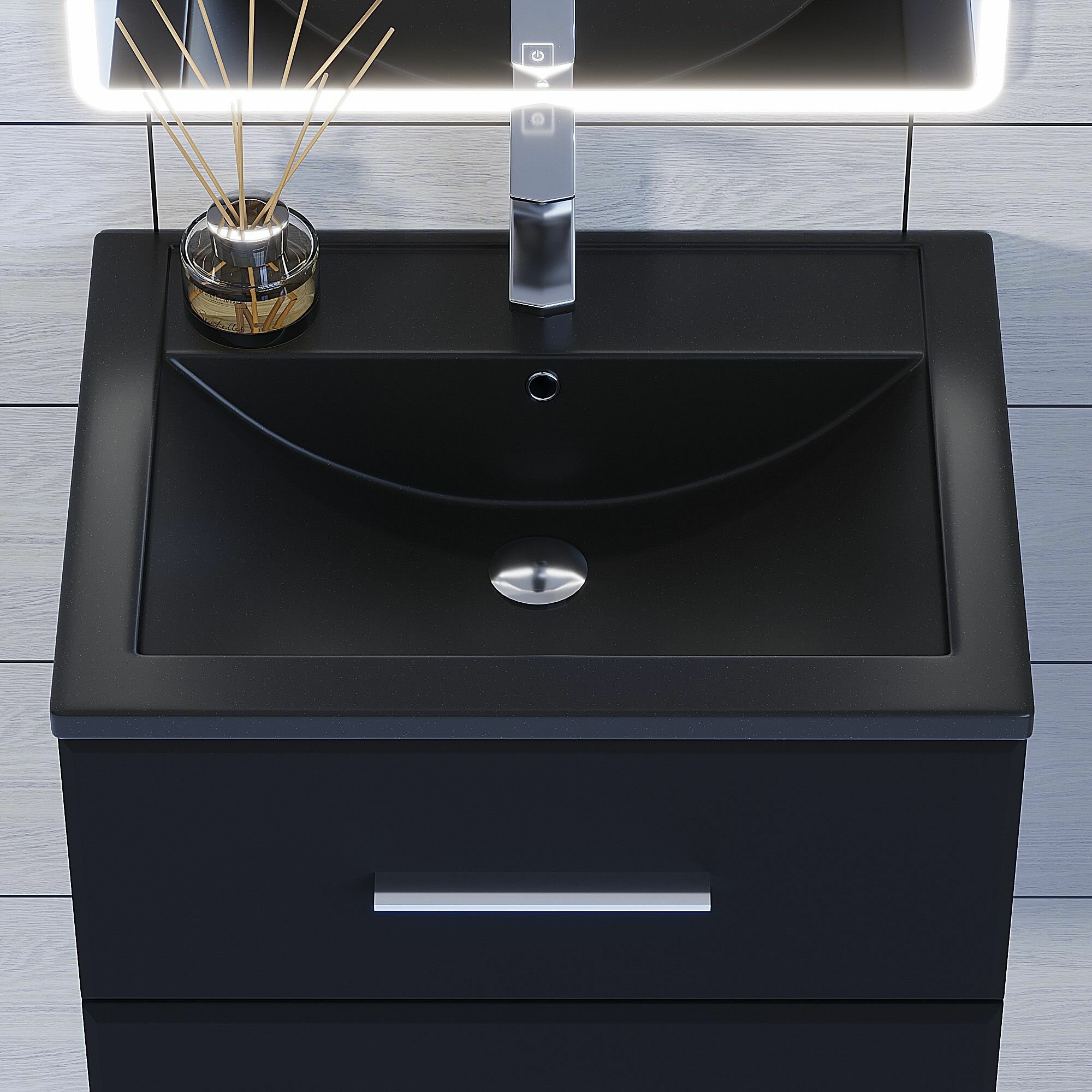 Раковина кварцевая для ванной Uperwood Foster Quartz 60х40,5х16,5 см, черная матовая, уголь