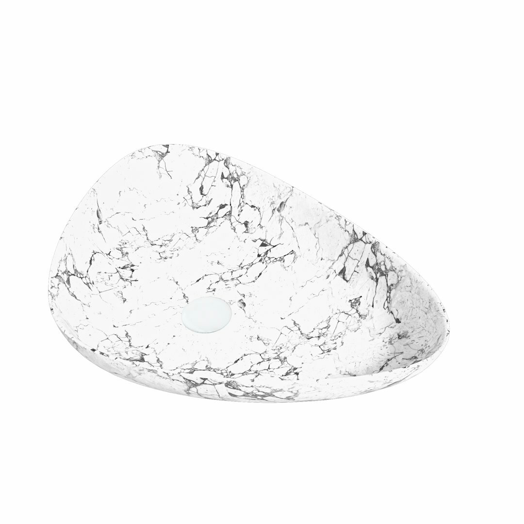 Раковина для ванной накладная Teymi Lori 60 белый мрамор в комплекте смеситель высокий черный матовый F12924