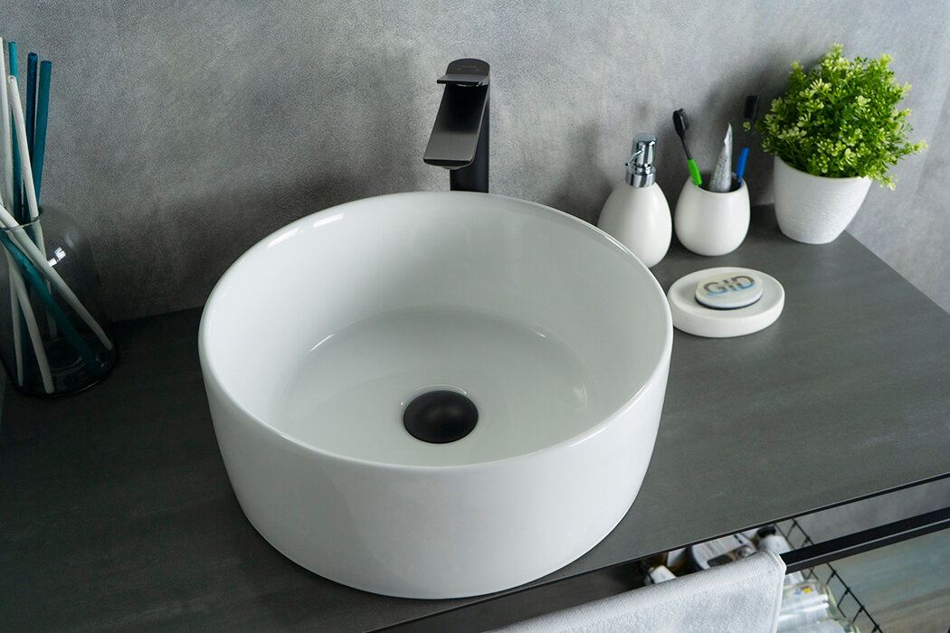 (40х40х15см) Комплект 2 предмета: Керамическая накладная раковина для ванной GID N9011 с сифоном А-3202 интересное: