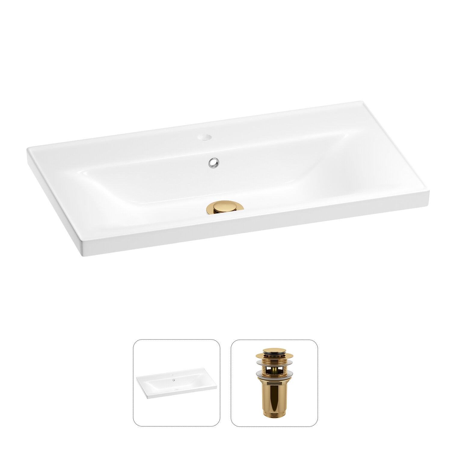 Купить Подвесная раковина в ванную комнату Wellsee FreeDom 202011397 в наборе 2 в 1: мебельная прямоугольная раковина 65 см, донный клапан в цвете золото