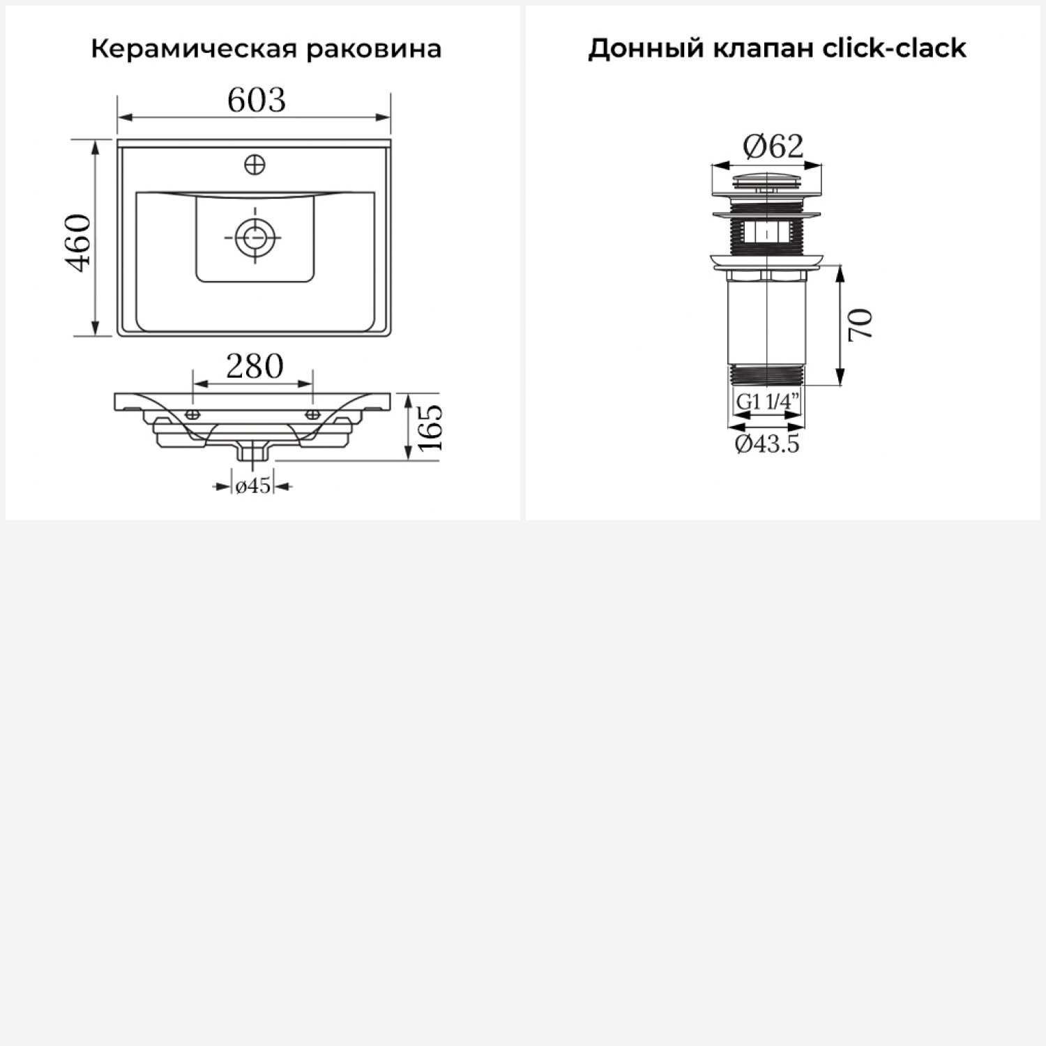 Подвесная раковина в ванную комнату Wellsee FreeDom 202011391 в наборе 2 в 1: мебельная прямоугольная раковина 60 см, донный клапан в цвете хром