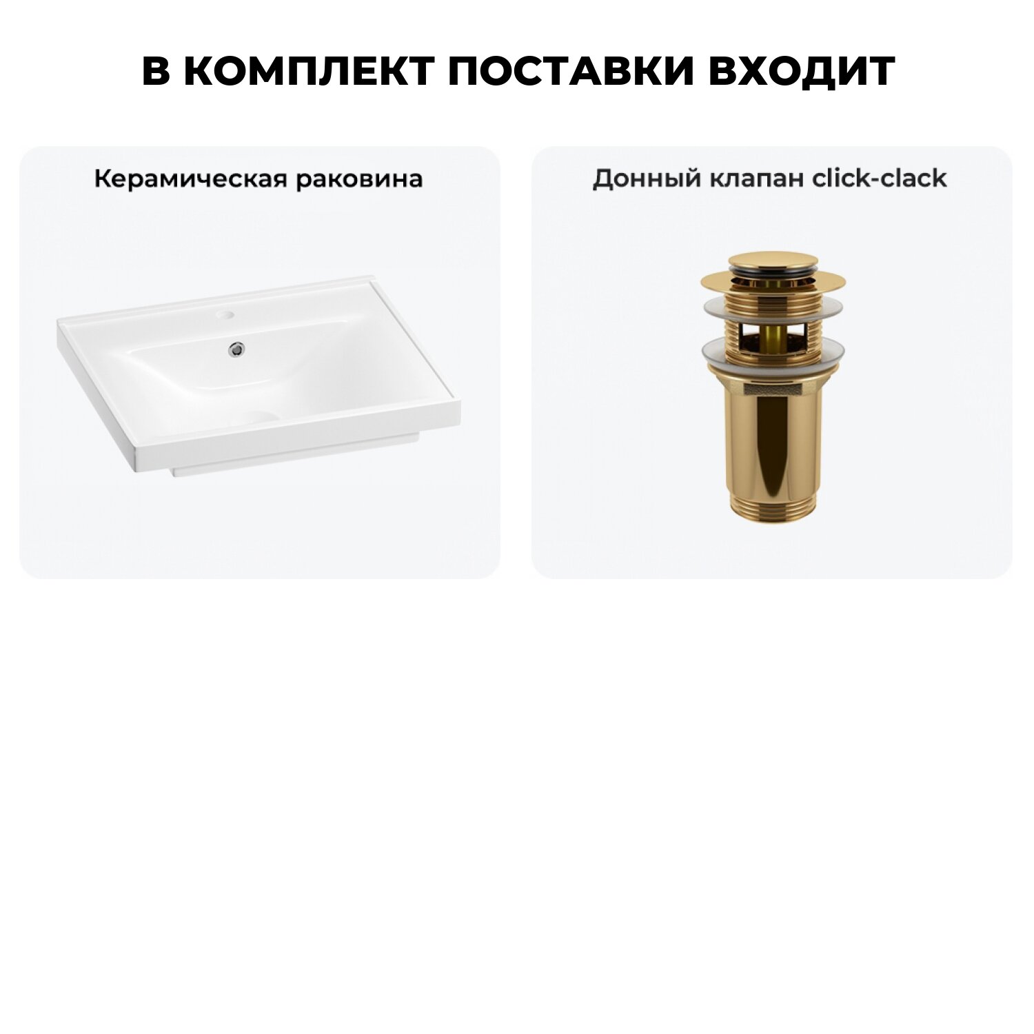 Подвесная раковина в ванную комнату Wellsee FreeDom 202011397 в наборе 2 в 1: мебельная прямоугольная раковина 65 см, донный клапан в цвете золото