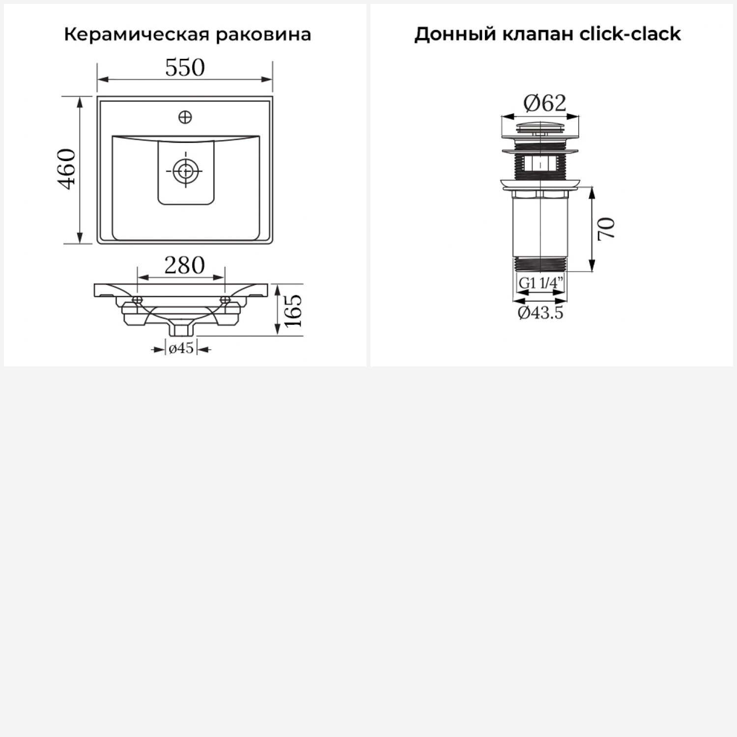 Подвесная раковина в ванную комнату Wellsee FreeDom 202011387 в наборе 2 в 1: мебельная прямоугольная раковина 55 см, донный клапан в цвете хром