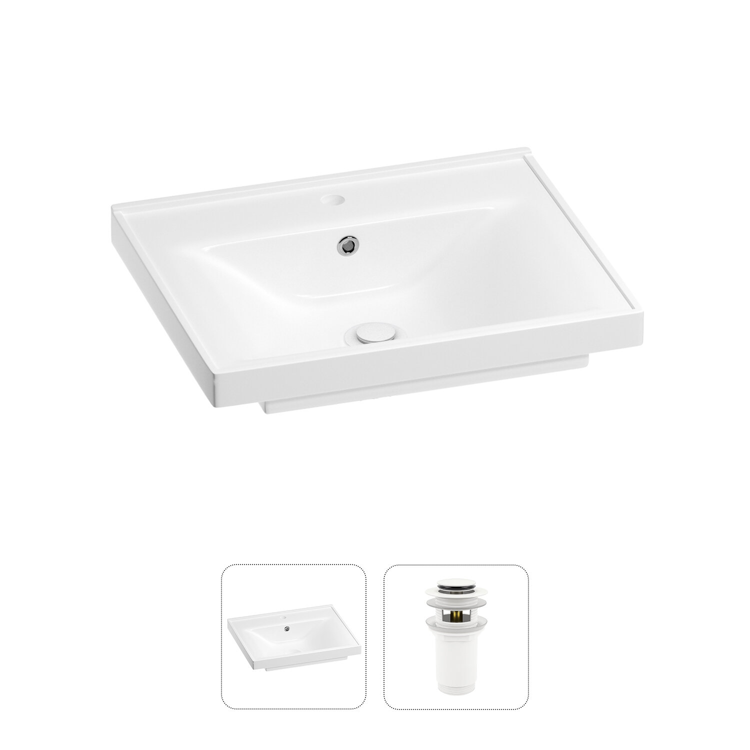 Подвесная раковина в ванную комнату Wellsee FreeDom 202011394 в наборе 2 в 1: мебельная прямоугольная раковина 60 см, донный клапан в цвете матовый белый