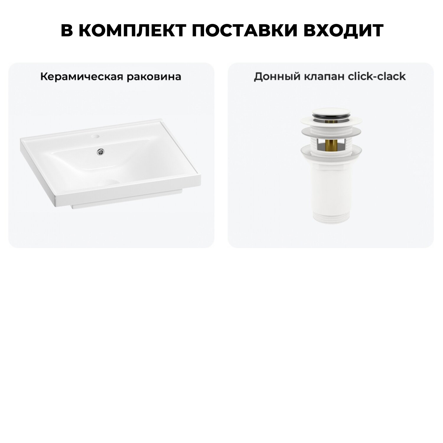 Подвесная раковина в ванную комнату Wellsee FreeDom 202011397 в наборе 2 в 1: мебельная прямоугольная раковина 65 см, донный клапан в цвете золото