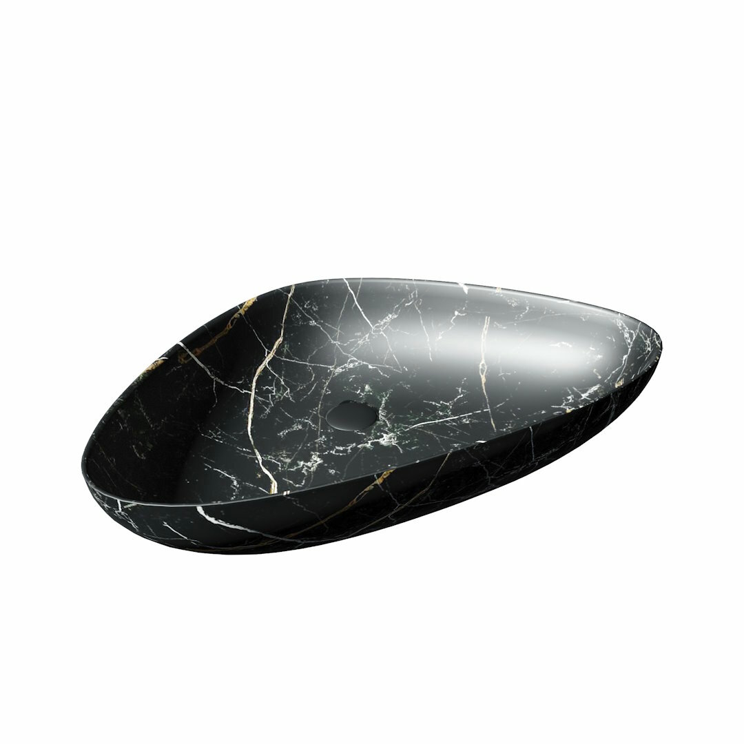 Раковина для ванной накладная Teymi Helmi 50 черный мрамор в комплекте смеситель высокий черный матовый F12979