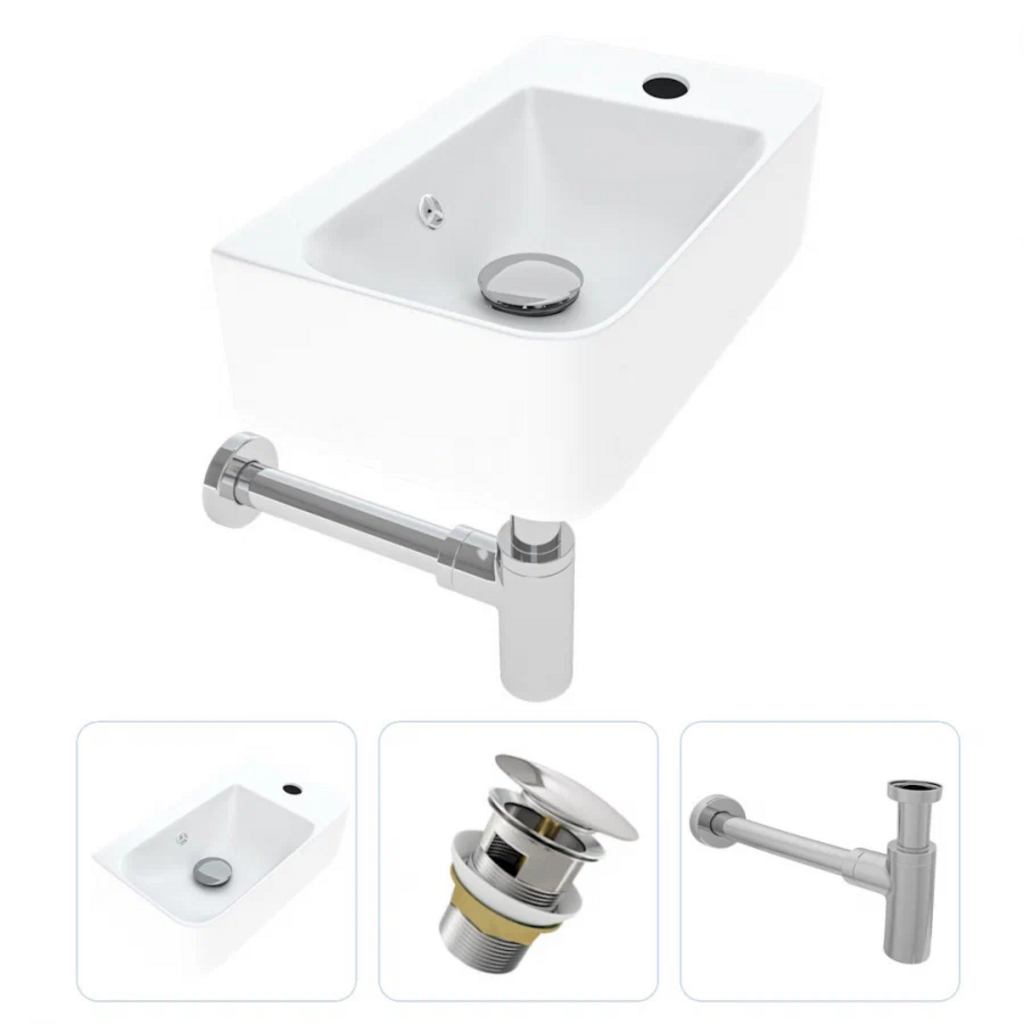 Раковина подвесная для ванной Teymi Hanna 45 правая + донный клапан клик-клак с переливом белый и сифон хром F07542