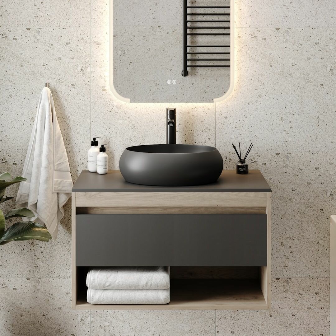 Раковина для ванной накладная Teymi Helmi Mini 40 цвет черный матовый T50288