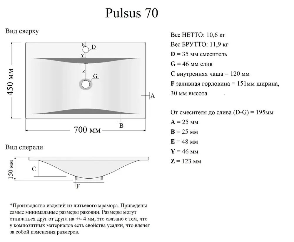 Раковина Madera Pulsus 70 интересное: